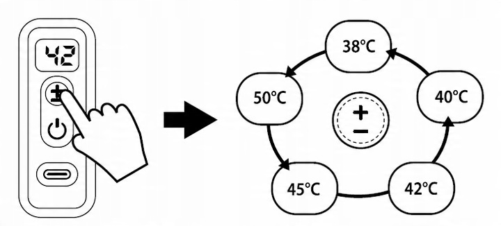 ✔ ️ Термостат – забезпечує рівномірну температуру води (приблизно 42°C).