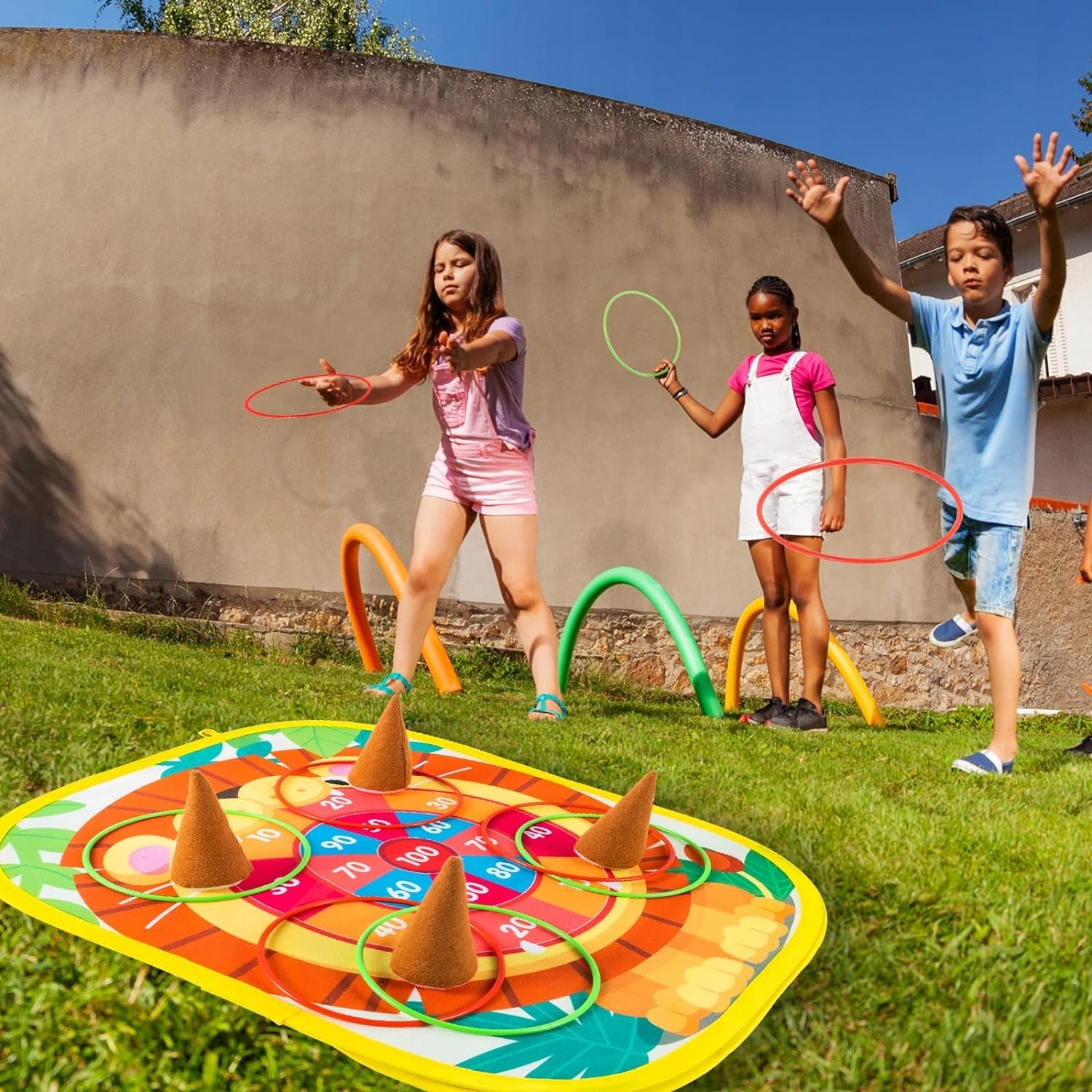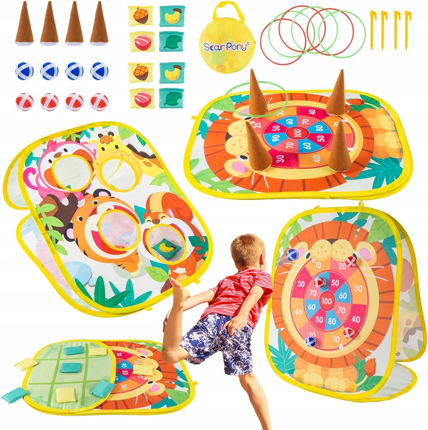 Гра Starpony 4 в 1 підкидання мішка з кріслами - складна портативна гра в кидання кукурудзяної ями, гра в дартс, гра в кидки кільця та настільна гра в хрестики-нулики для дітей 4-8 років (32 шт.)