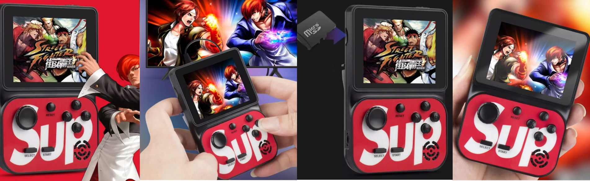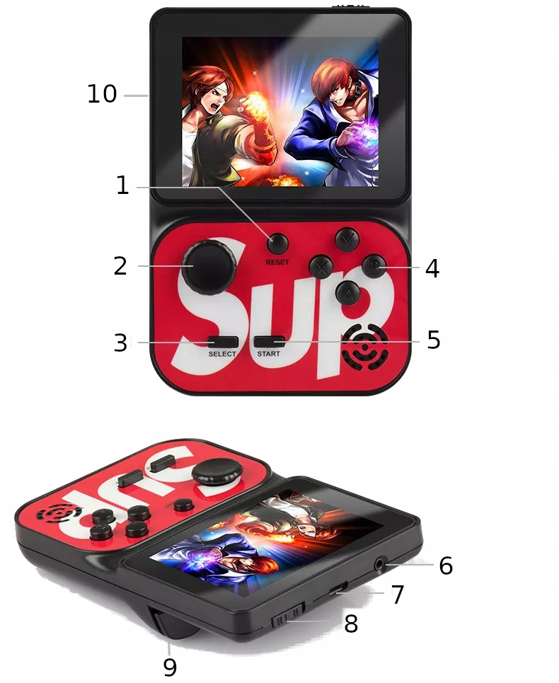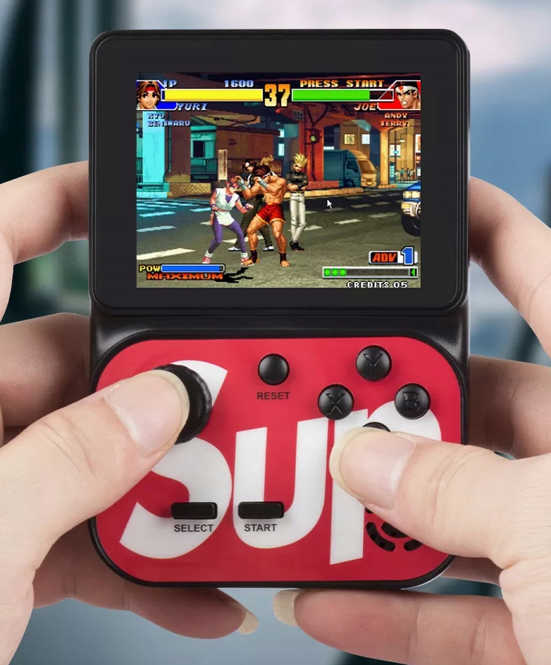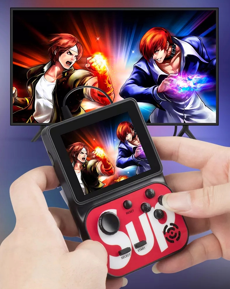 Консоль постачається з попередньо завантаженими 2000 іграми з можливістю гри на консолі або, підключивши її, на телевізорі. Якщо цього було недостатньо, у вас є можливість завантажувати свої ігри. Карта пам'яті SD на 4 ГБ, що входить у комплект, дозволяє зберігати стан гри. Консоль дуже проста у використанні, тому з нею впорається навіть найменший. Має вбудованийємний акумулятор, який дозволить вам використовувати пристрій протягом багатьох годин.