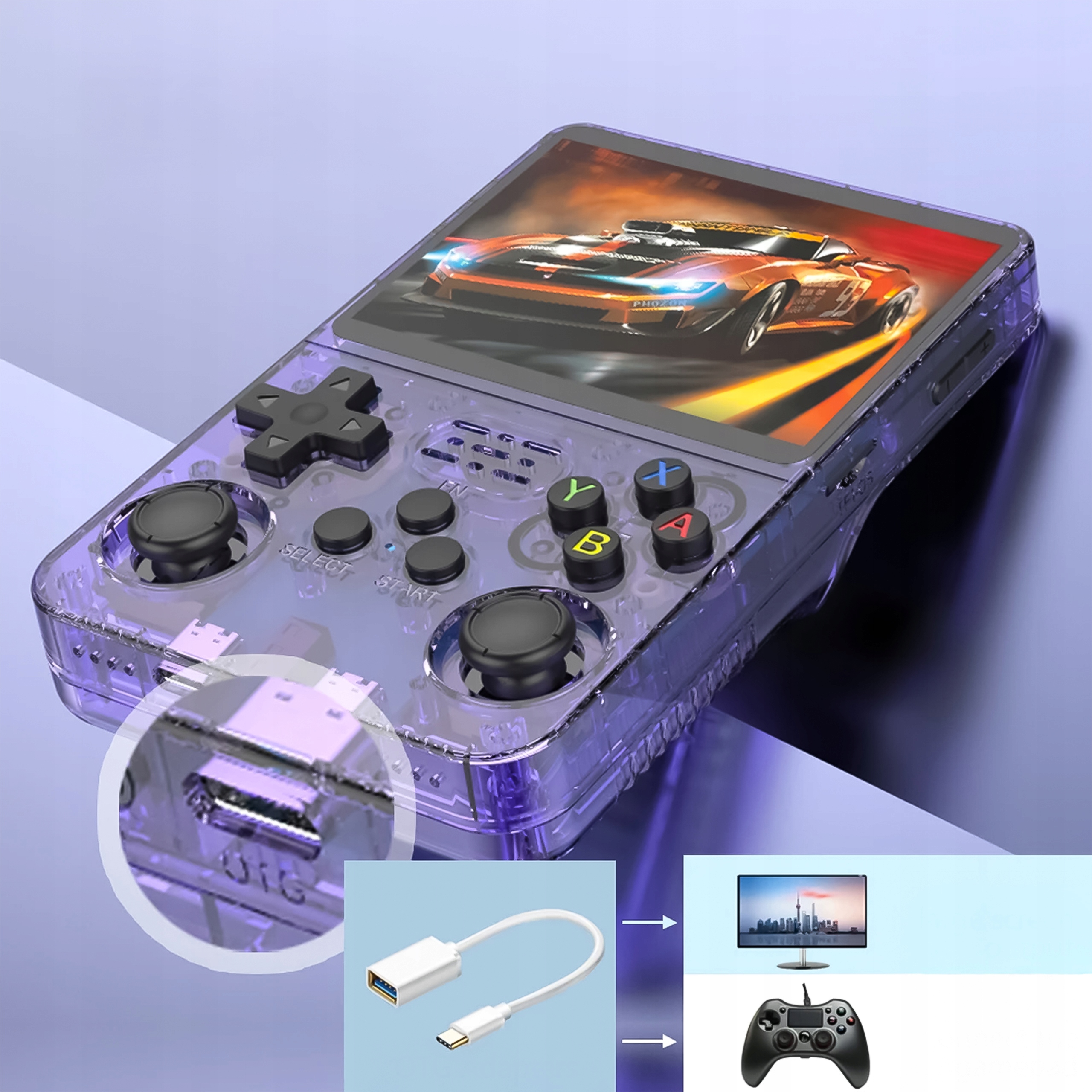 Консоль R36S оснащена портом OTG (On-The-Go), що значно розширює її функціональність. Завдяки цьому ви можете підключати зовнішні USB-пристрої, такі як флешки, планшети, клавіатури, миші або адаптери Wi-Fi. Функція OTG також дозволяє передавати дані між внутрішньою пам’яттю та зовнішнім носієм, що підвищує зручність і універсальність використання.
