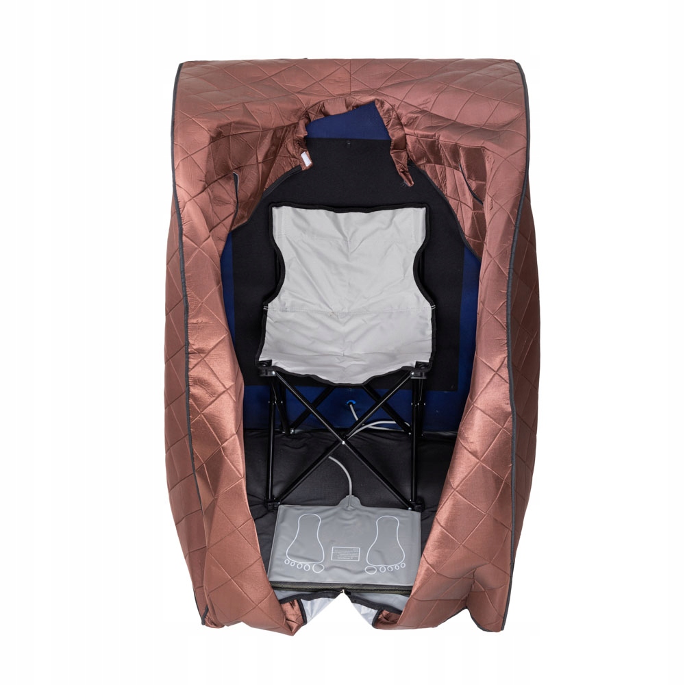 У сауні є розкладне крісло та підігрів для ніг. На пульті дистанційного керування ви можете легко встановити температуру всередині сауни, особливо температуру ніг. Завдяки двостороннім застібкам-блискавкам Ви зможете комфортно входити або виходити з сауни. Два практичних отвори для рук оцінить кожен, хто хоче скоротати час за читанням книги або переглядом фільму на планшеті в сауні. Компактний дизайн ідеально підходить для невеликих приміщень! Лише кілька швидких рухів, і ви зможете сховати сауну під ліжком або за шафою.