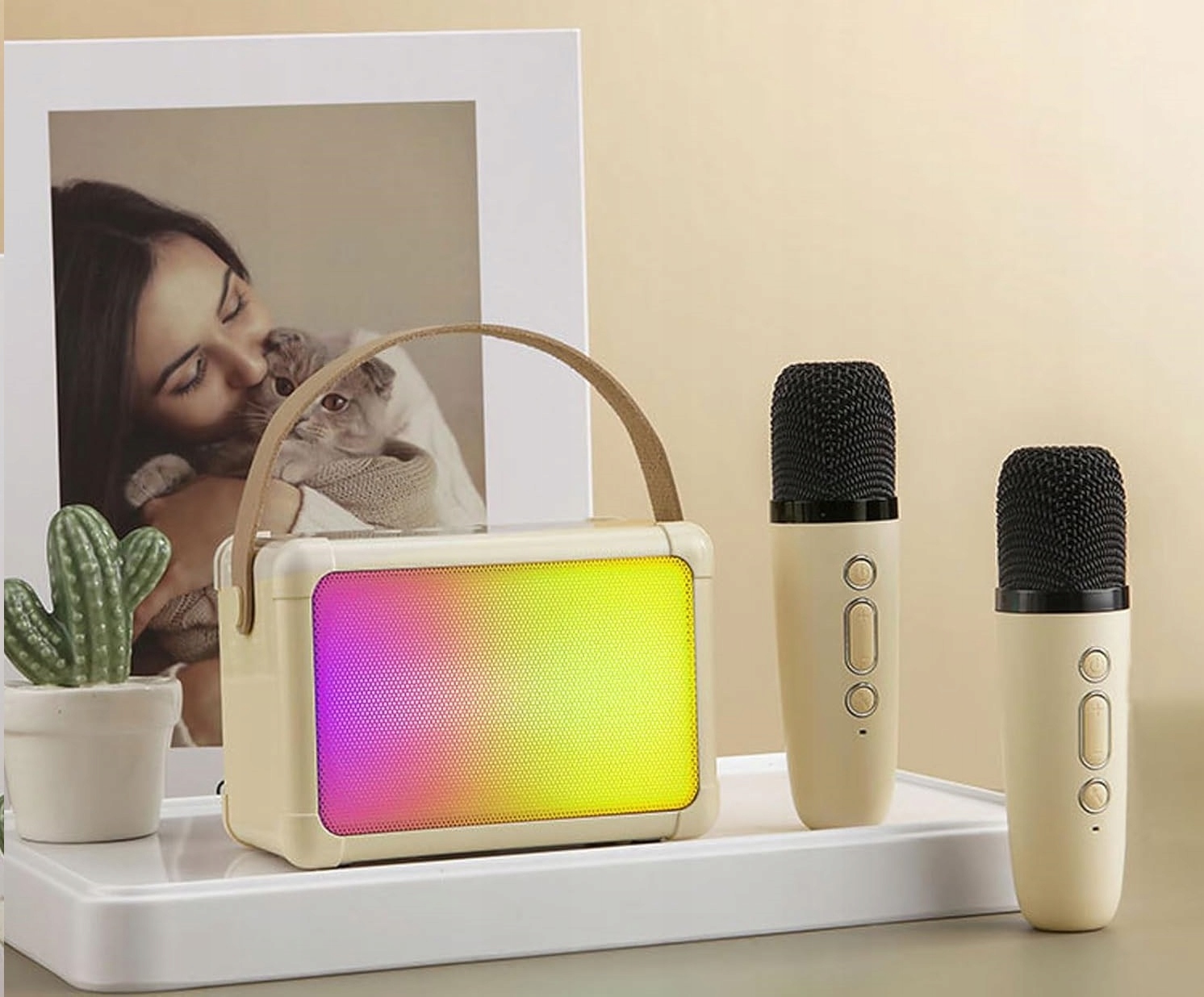 ПОРТАТИВНА КАРАОКЕ-КОЛОНЦІЯ BLUETOOTH + 2 МІКРОФОНИ СВІТЛОДІОДНА ПАНЕЛЬ ПІДСВІТЛЕННЯ