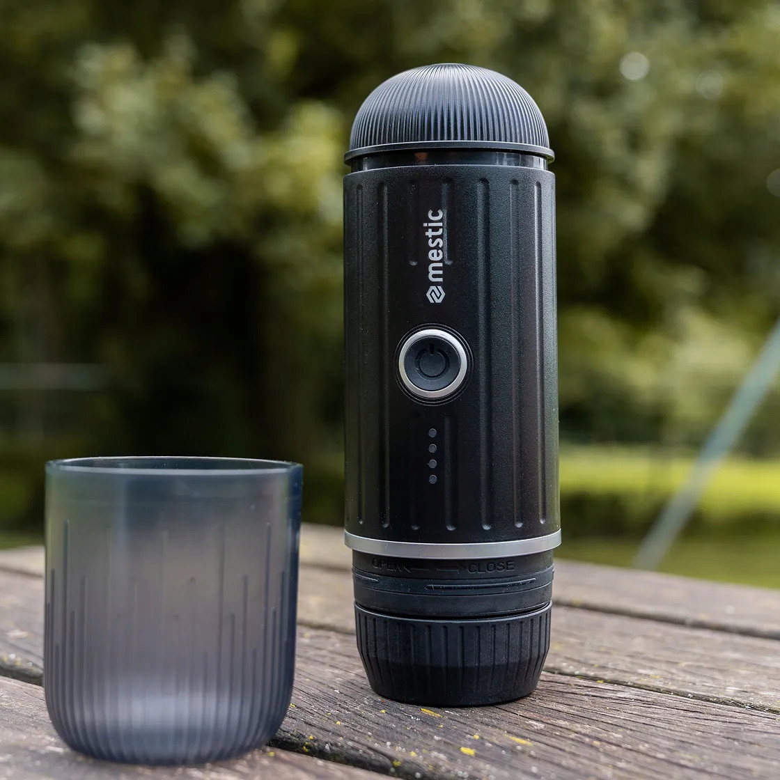 - Портативна кавоварка Mestic MK-90 характеризується компактним портативним чорним корпусом