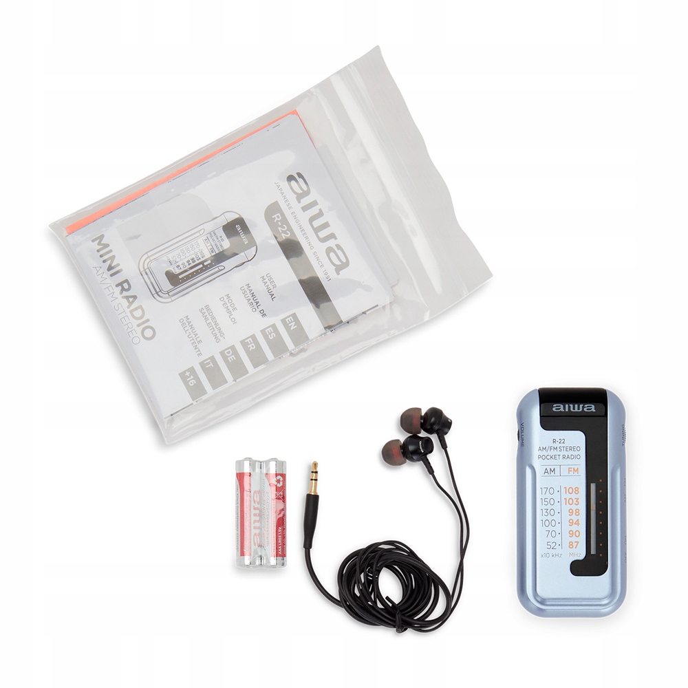 Радіо AIWA R-22 дуже зручно транспортувати. Завдяки малій вазі (35 г) ви можете взяти пристрій із собою, куди завгодно.