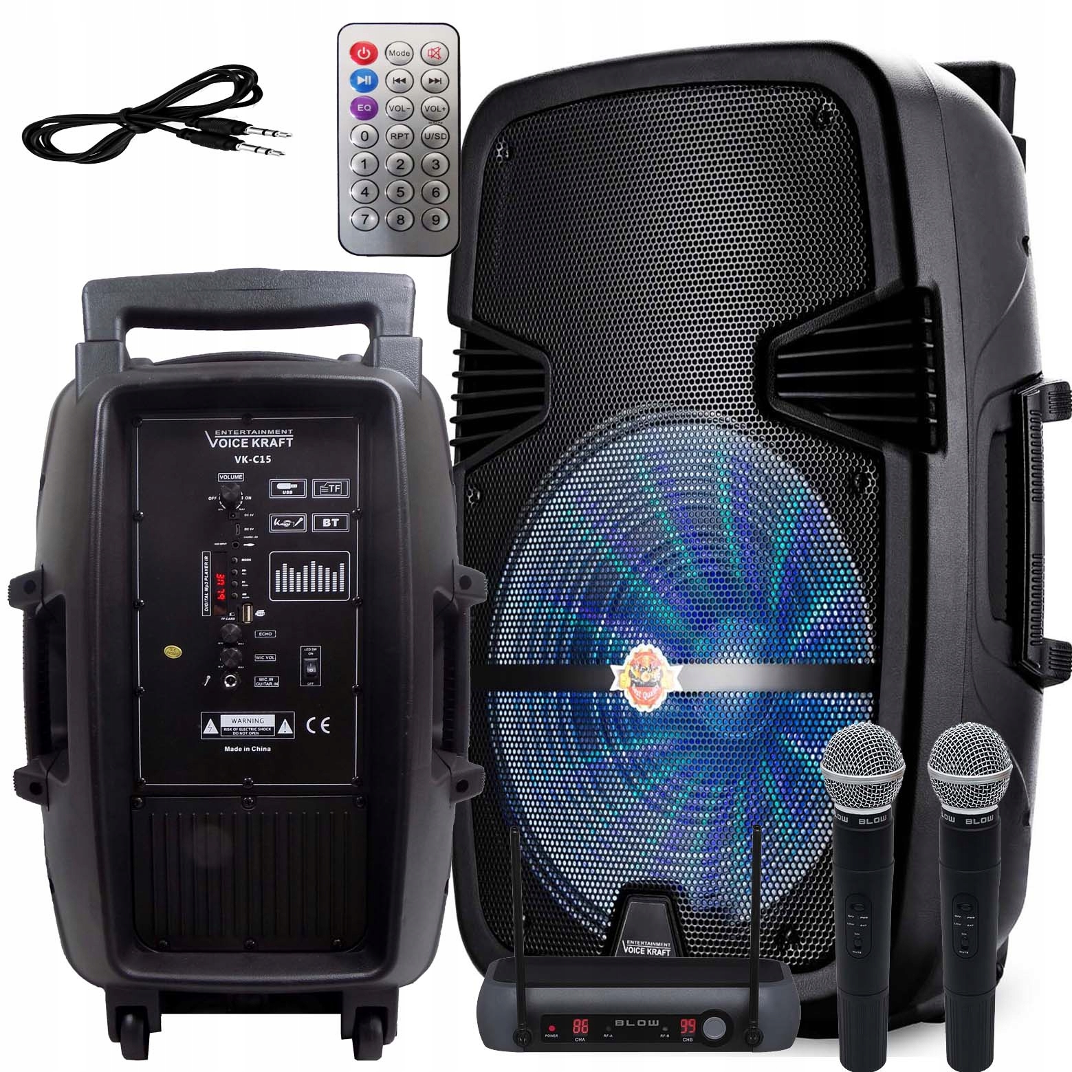 Активний гучномовець ВК з дистанційним керуванням ідеально підходить для шкільних свят, конференцій, публічних виступів і там, де звук повинен досягати великої групи людей. Колонка має функцію підключення Bluetooth і SD і USB вхід, завдяки чому може відтворювати записи з найпопулярніших носіїв. Додатковий гітарний вхід покращить звук під час живого концерту. Колона виготовлена з високоякісних матеріалів, а завдяки колесам її можна легко транспортувати в будь-яке місце.