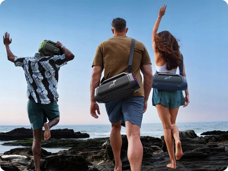 Завдяки водонепроникності IPX7 динамік легко витримує дощ, бризки або навіть короткочасне занурення у воду. Радіус дії Bluetooth до 100 метрів дає вам повну свободу пересування, не турбуючись про переривання відтворення музики. Додатковою функцією є можливість використовувати пристрій як павербанк, що стане в нагоді в подорожі або під час тривалої вечірки. У комплект входить ремінь для перенесення, який полегшує транспортування в будь-яких умовах. Soundcore Boom 2 Plus — компаньйон, який не розчарує — незалежно від місця та ситуації.