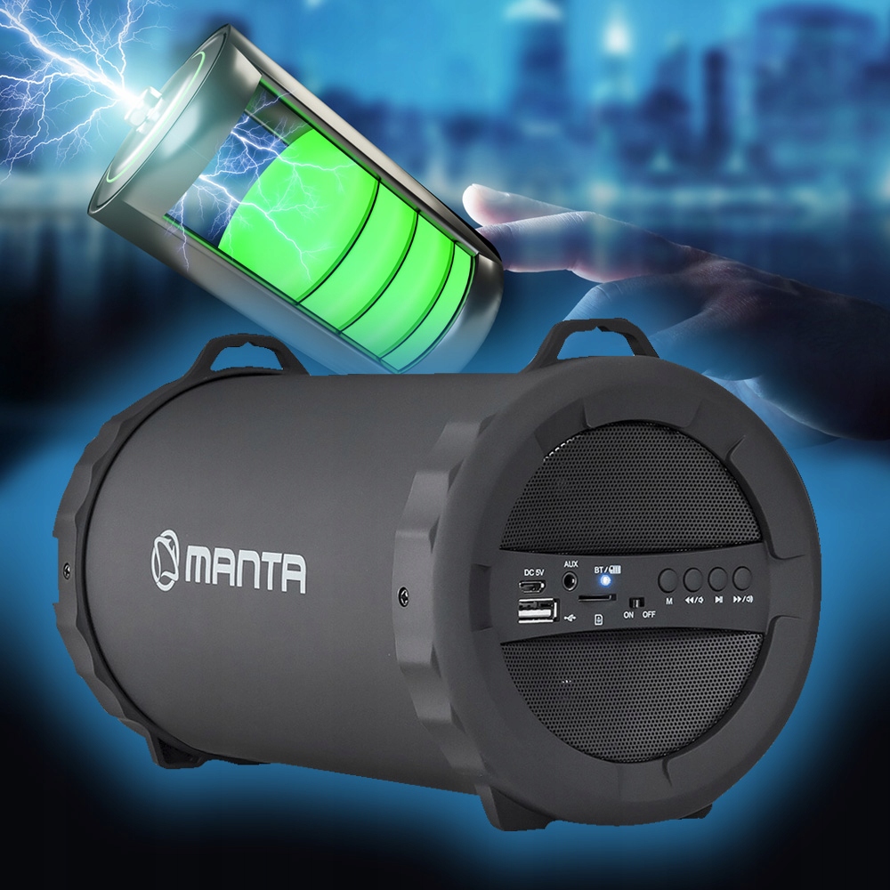 Manta Pipe SPK204FM — це мобільний пристрій, який можна брати з собою на вулицю завдяки вбудованому акумулятору та прикріпленому ремінцю для ще більшої зручності пересування.