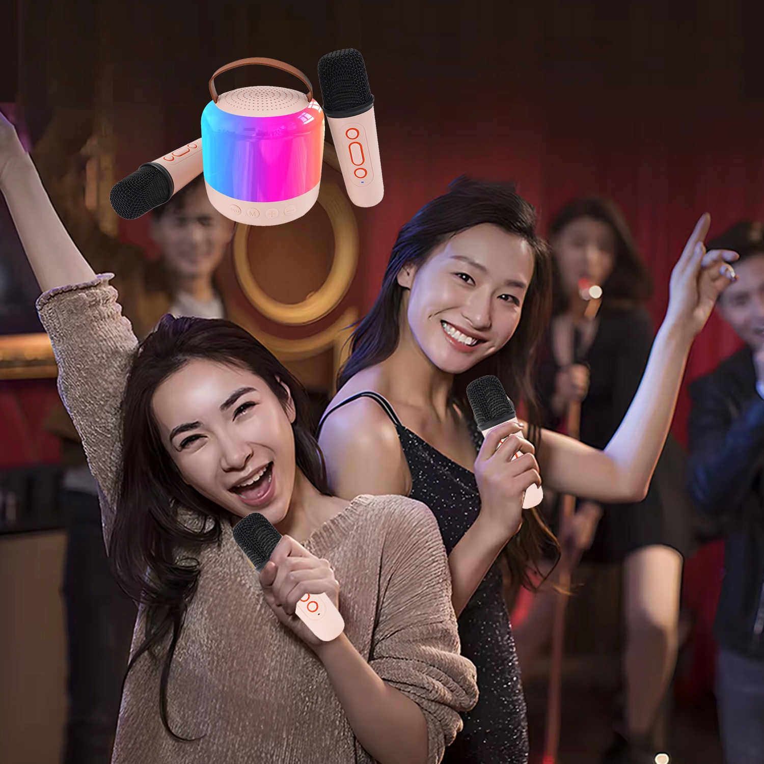Мініатюрна караоке-машина для дітей і дорослих, портативний динамік Bluetooth із 2 бездротовими мікрофонами та світлодіодними ліхтарями, іграшки для караоке