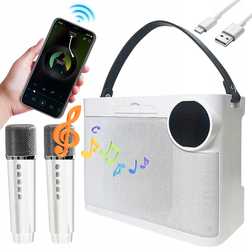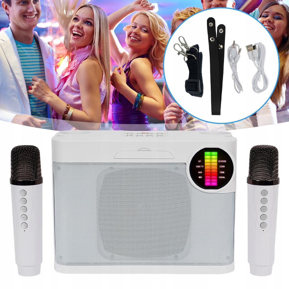 Організуйте незабутню вечірку вдома, на природі чи будь-де! Цей портативний караоке-колонка є центром розваг для вас, друзів і родини. Співайте під улюблені пісні за допомогою 2 мікрофонів, які входять у комплект, насолоджуйтесь чистим звуком із динаміка 10 Вт і розважайтеся з кольоровим освітленням і веселими голосовими ефектами! 🎶✨