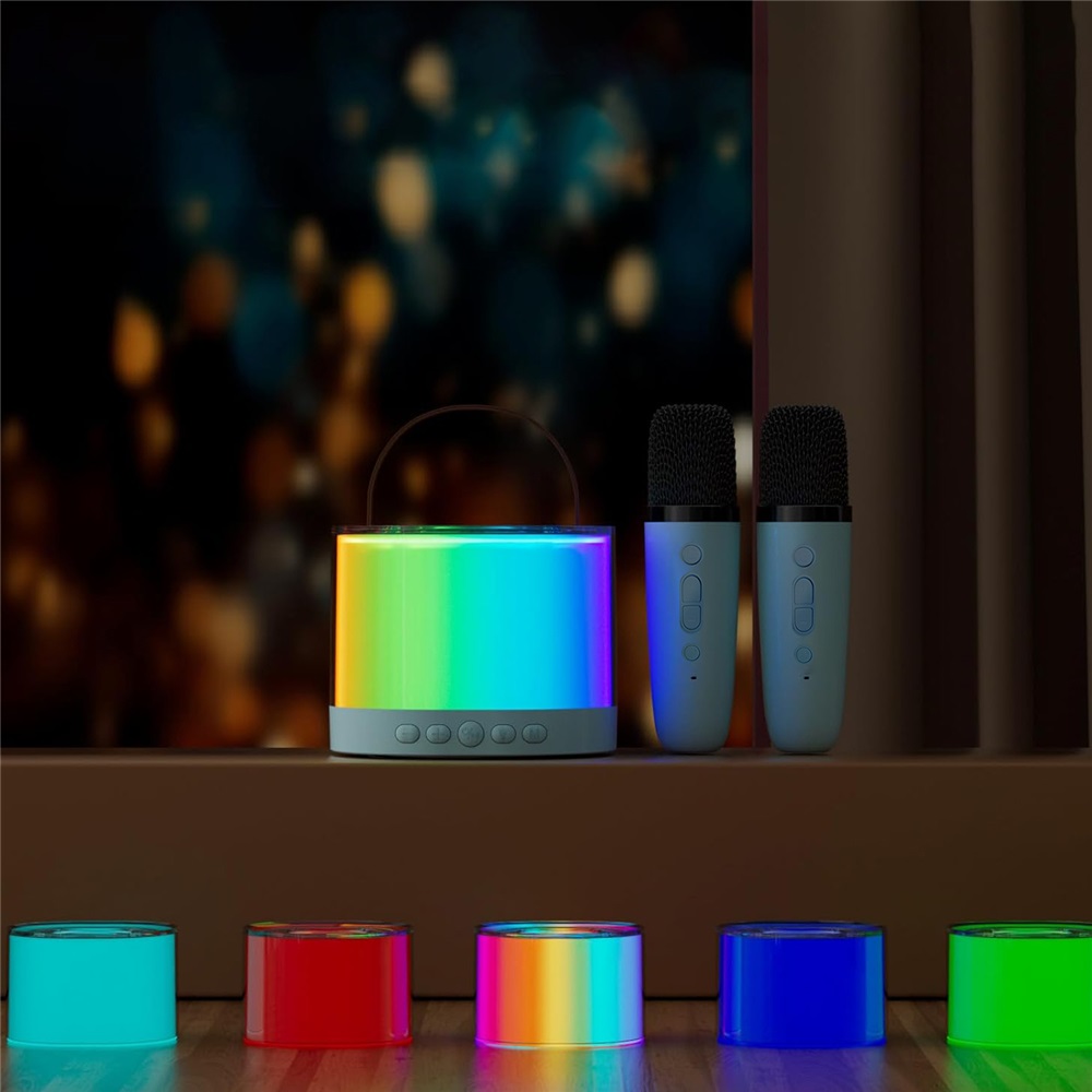 Наша караоке-машина Bluetooth пропонує захоплююче світлове шоу. В одноколірному режимі ви можете вибрати з кількох кольорів. Крім того, у режимі Rhythm Music підсвічування синхронізується з ритмом, щоб створити захоплююче та яскраве караоке. Ця функція ідеально підходить для додавання хвилювання та енергії будь-якій вечірці.