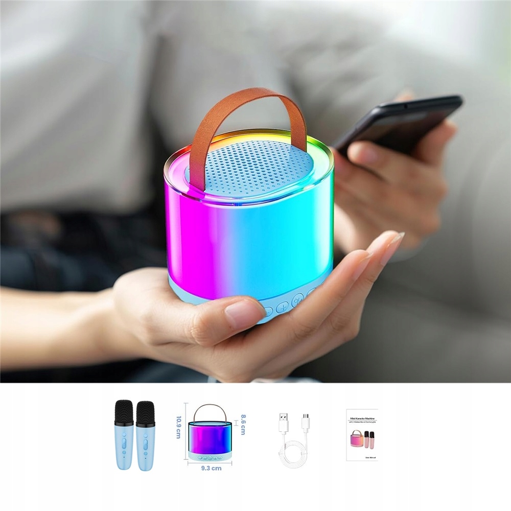 Наша міні-караоке-машина має вбудований потужний літій-іонний акумулятор ємністю 1500 мАг, який забезпечує безперервне відтворення музики протягом кількох годин із гучністю 50%. Свобода гри в приміщенні чи на відкритому повітрі робить його ідеальним для вечірок просто неба, домашніх вечірок або навіть караоке в дорозі.