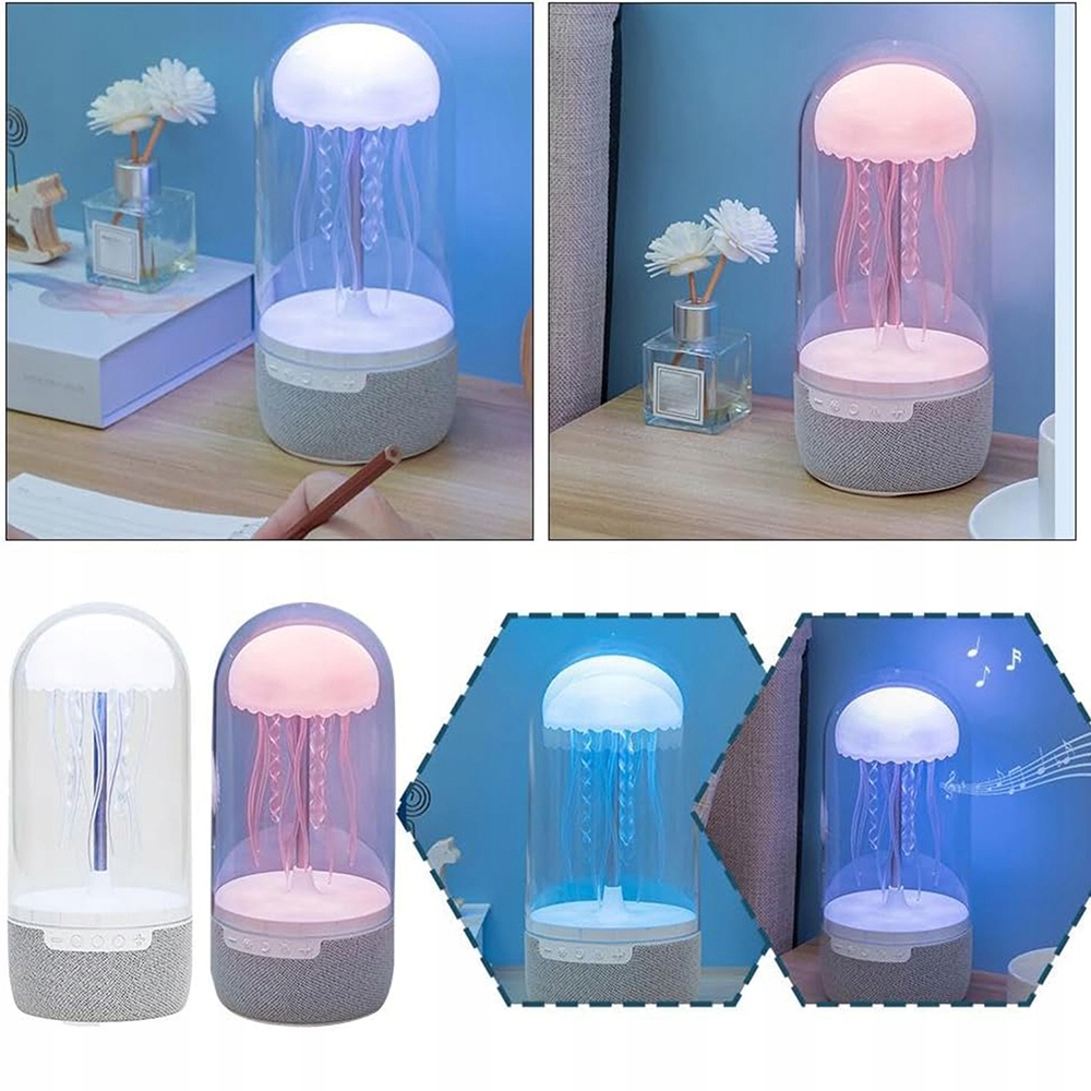 - Динамік Jellyfish Light Bluetooth забезпечує чистий звук, точні середні тони та глибокі баси, поєднуючи візуальний спокій із задоволенням від прослуховування улюбленої музики для полегшення. стрес.