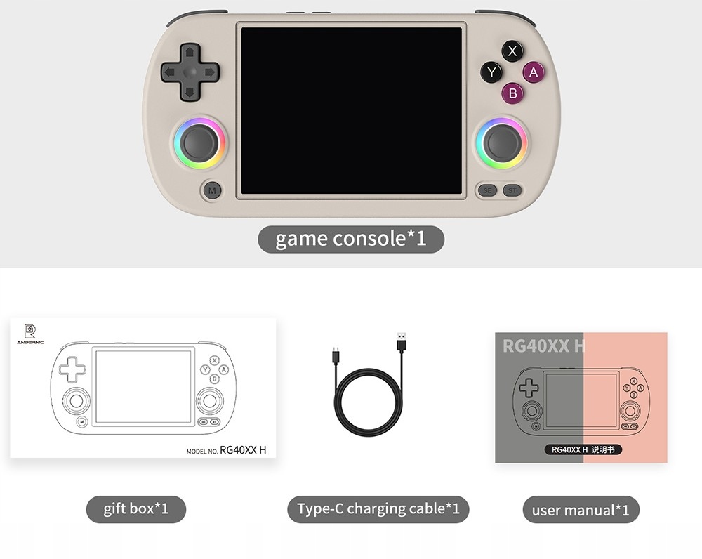 - ANBERNIC RG40XX H оснащено чотирьохядерним процесором ARM Cortex-A53 і чотирьохядерним графічним процесором PowerVR SGX544MP, що забезпечує низьке енергоспоживання та високу продуктивність 40XX H. Оперативна пам’ять RG40XXH становить LPDDR4 1 ГБ. Чим більше ОЗУ, тим швидший час відповіді системи.