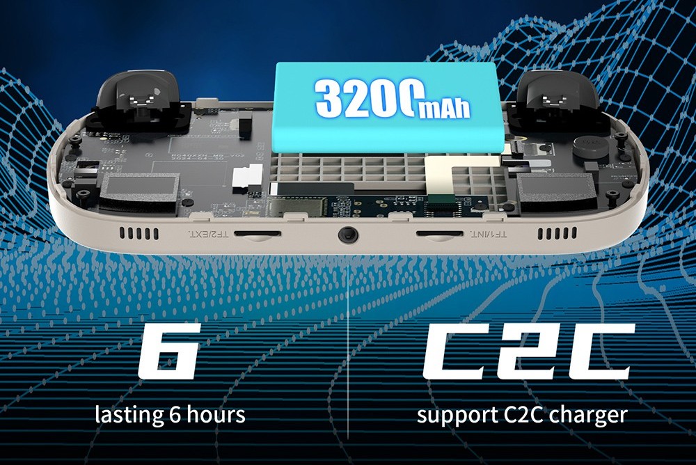 - Портативна ігрова консоль RG40XX H важить лише 200 грамів. Він легко поміщається у вашій кишені, тому ви можете грати в ігри будь-де та будь-коли. Полімерний літій-іонний акумулятор ємністю 3200 мАг забезпечує до 8 годин безперервної роботи.