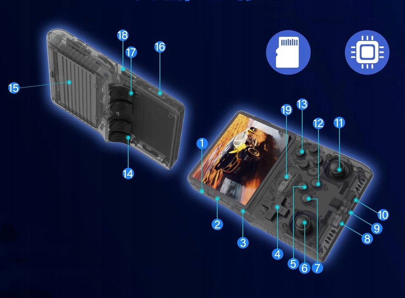 Ретро-ігрова консоль: R40S — це високопродуктивна ретро-ігрова консоль, оснащена 64-розрядним процесором RK3326 із частотою 1,5 ГГц і двоядерним графічним процесором Mali-G31MP, що забезпечує плавний і швидкий ігровий процес у кількох емуляторах. Його операційна система бездоганно запускає більшість ретро-ігор і програм, успішно переносячи класичні аркадні ігри на більші платформи.