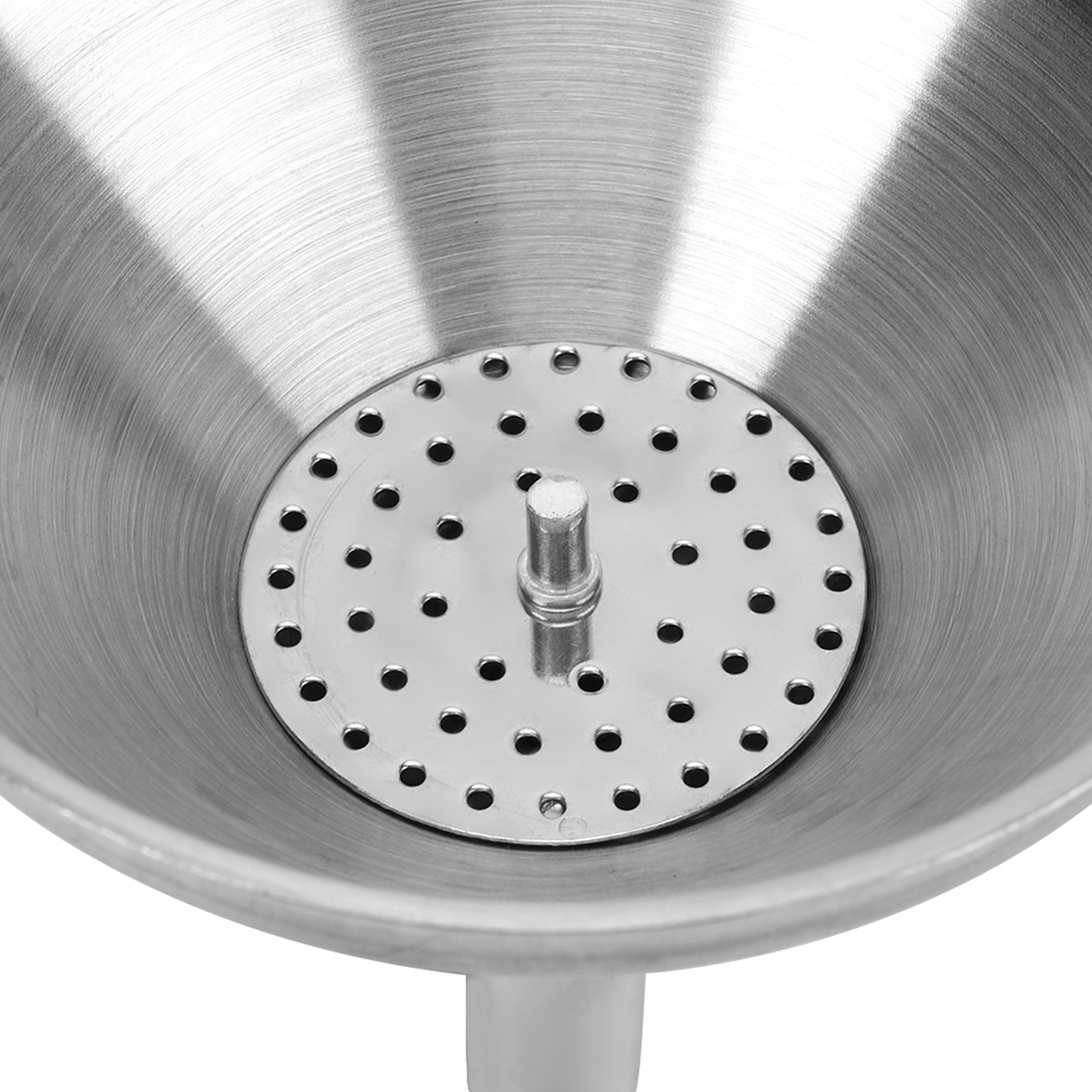 4. Цю воронку з нержавіючої сталі легко зберігати та вона має ергономічну ручку, яку можна повісити на кухонних шафах.