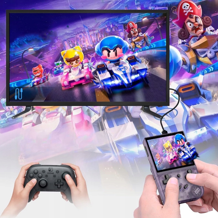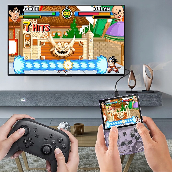 Ігрову консоль RG35XX можна підключити до телевізора за допомогою кабелю HDMI.