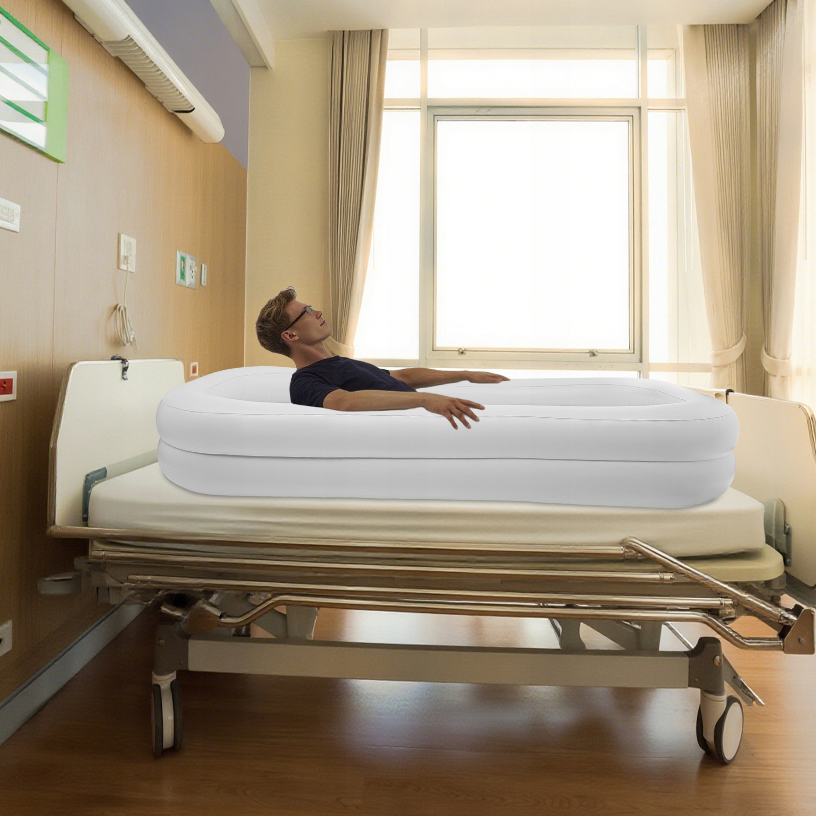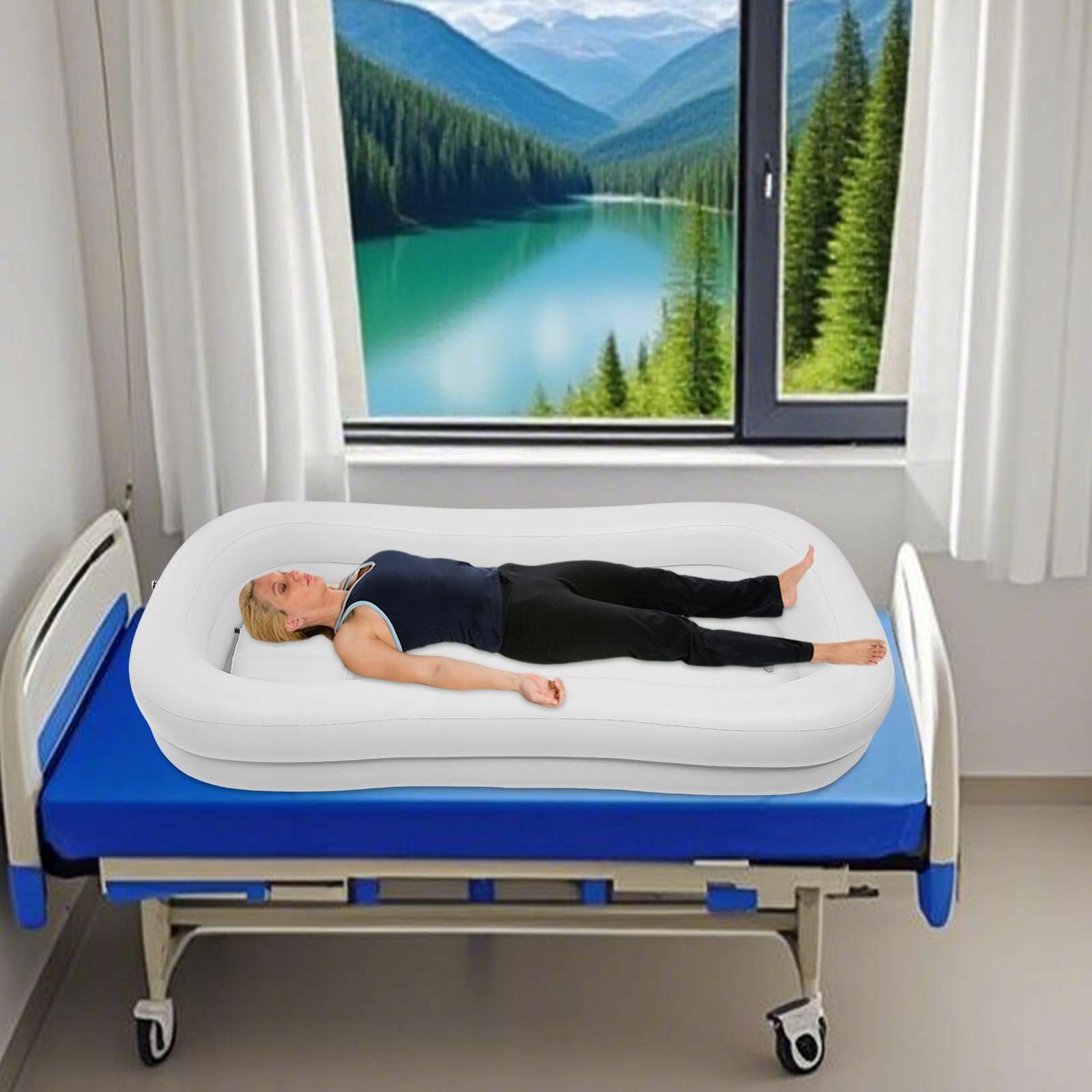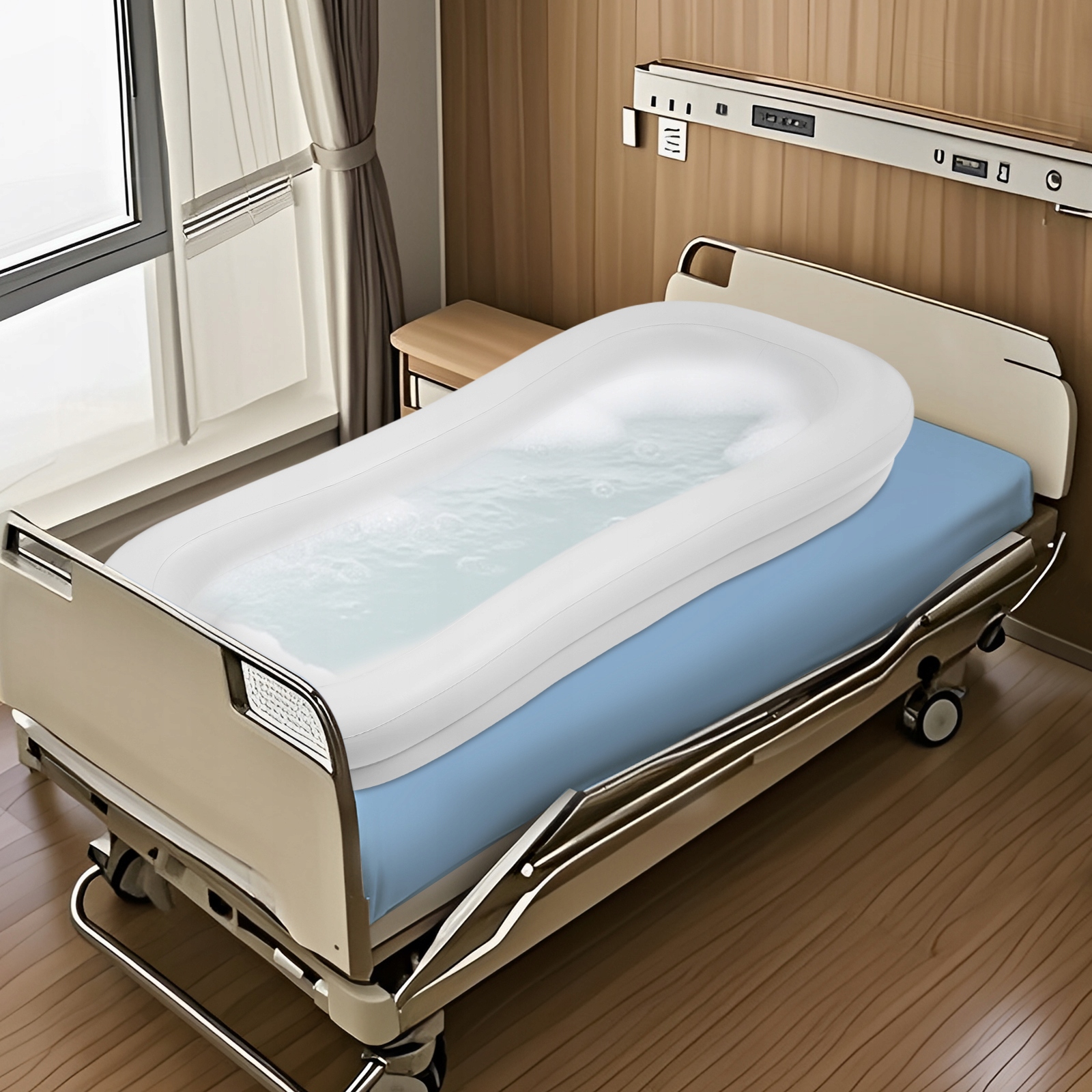 ✅✅Хороший помічник: великий розмір (86,61*39,37*14,96 дюймів) і надувна конструкція забезпечують комфортне й безпечне купання, спрощуючи миття й душ у ліжку та забезпечуючи легкий і безпечний душ для всього тіла людям, які прикуті до ліжка. або мати обмежену мобільність, заощаджуючи час і зусилля.