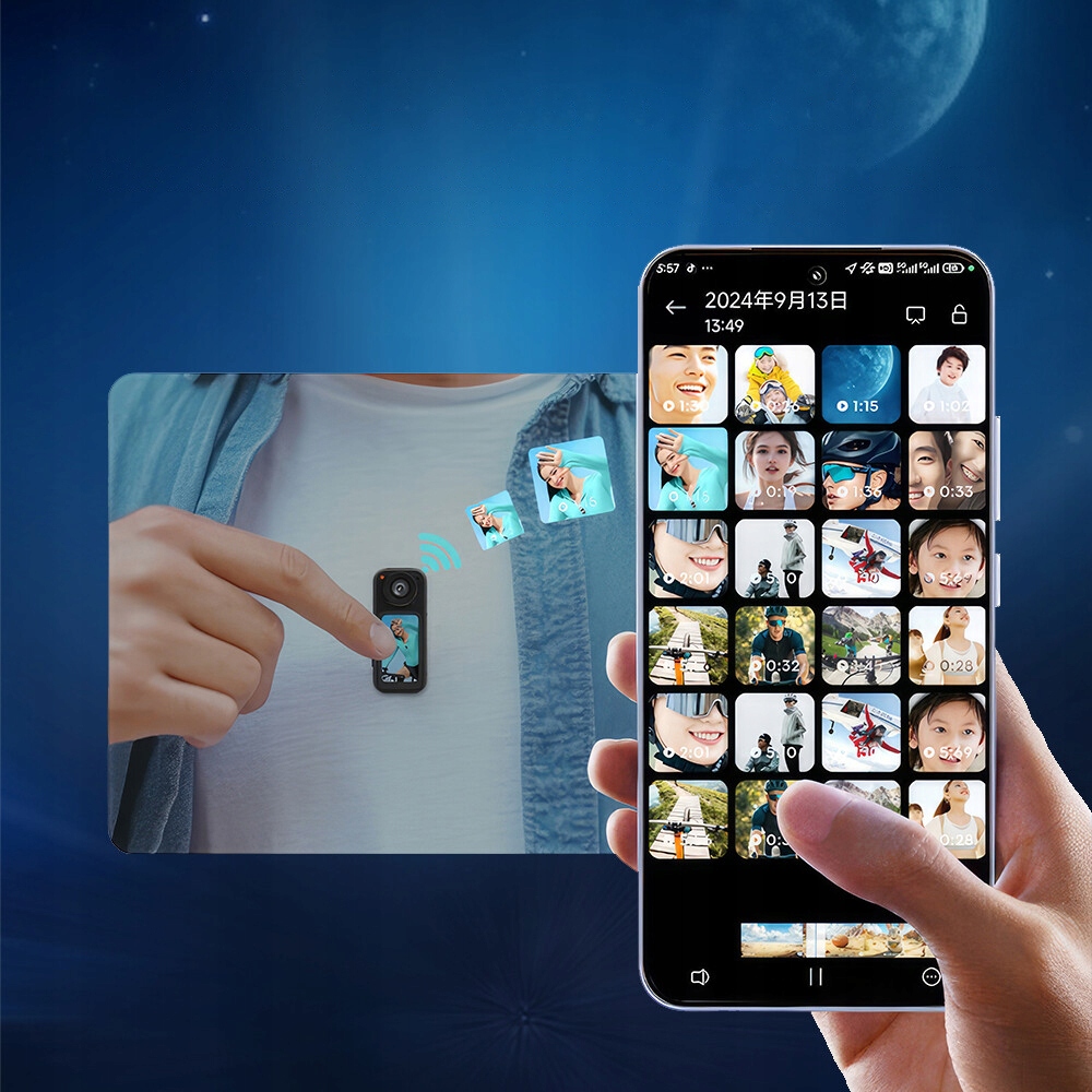 5. Wi-Fi Sharing і 128GB пам’ять: миттєво діліться 2,7K відео через Wi-Fi і зберігайте години записів на SD-карті 128GB (не входить у комплект). Розроблений для творців із мініатюрною камерою 4K, він поєднує в собі доступність із вірусним потенціалом.