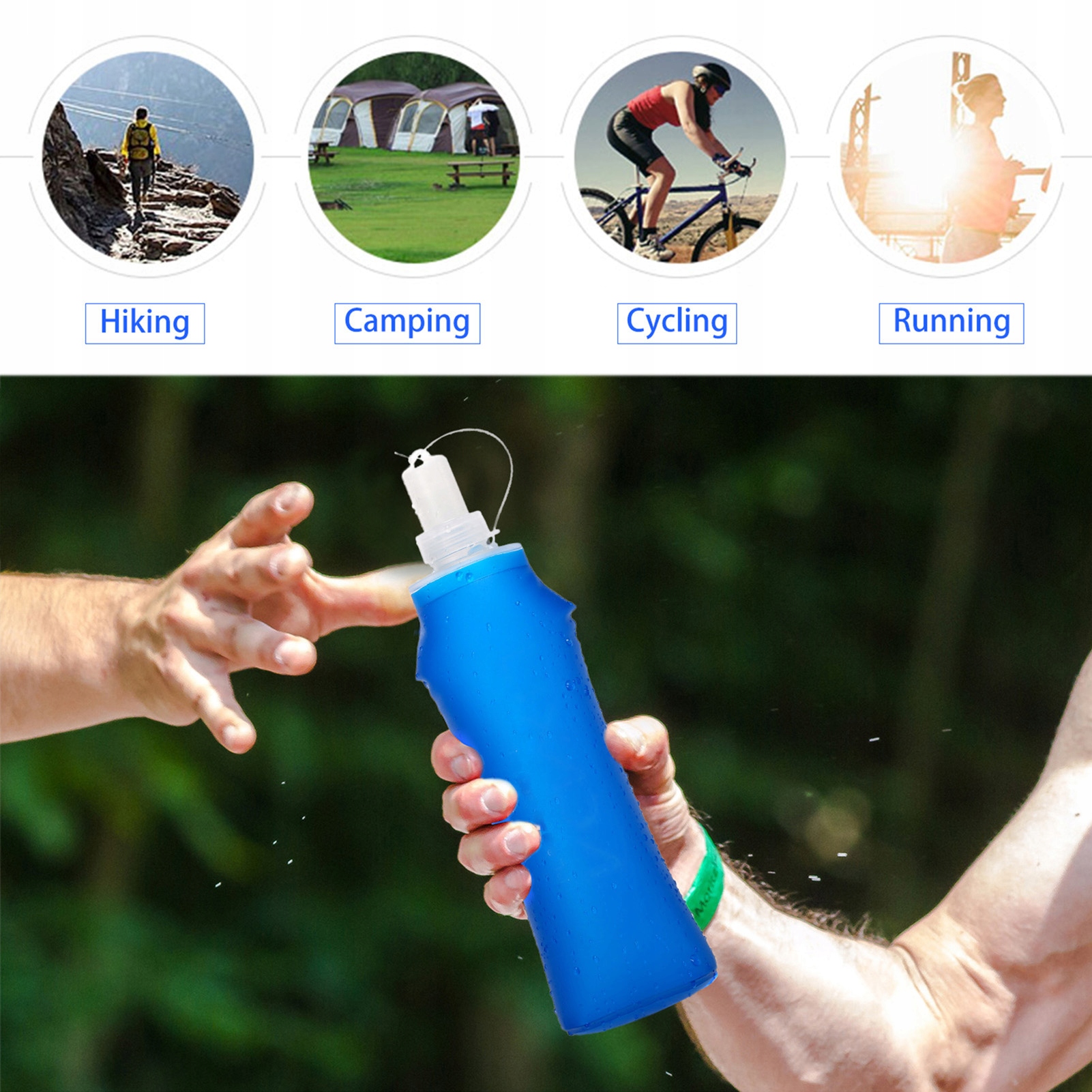 Велика місткість: ця складана пляшка має велику місткість 500 мл, яка може задовольнити вашу потребу у воді.