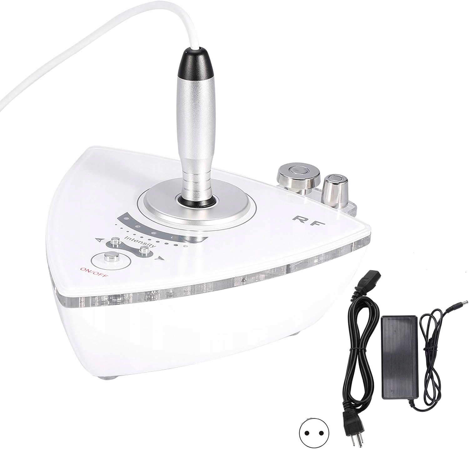 - Набір включає: 1 x RF Beauty пристрій з ручкою; 2 x зонд (щуп для обличчя та зонд для очей); 1 x блок живлення з вилкою