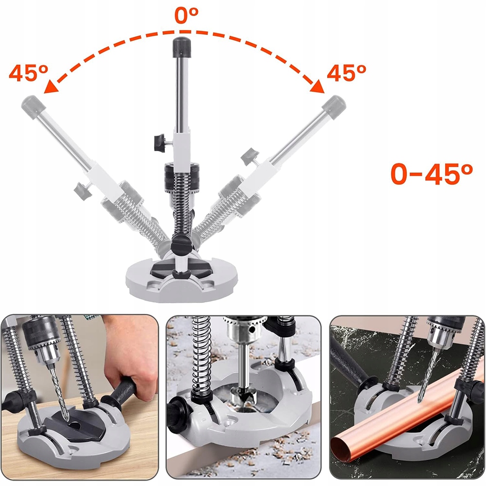 ⭐Регулювання кута нахилу:Конструкція підставки дозволяє регулювати кут, тож її можна використовувати в горизонтальному, вертикальному чи похилому положенні. Ця функція робить пристрій ідеальним для свердління отворів у стінах, стелях, конструктивних елементах та інших поверхнях.