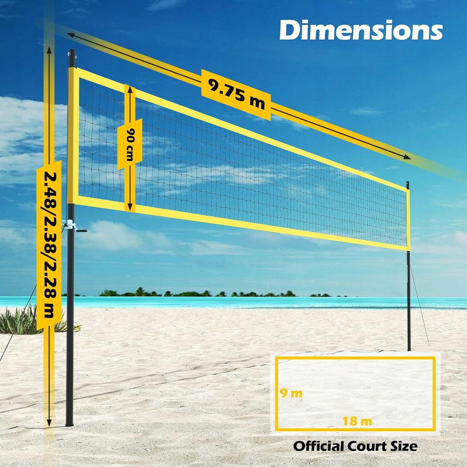 - Регульована висота стовпа: дозволяє регулювати сітку для чоловічої, жіночої або змішаної гри; наприклад, висота становить приблизно 2,25 м.