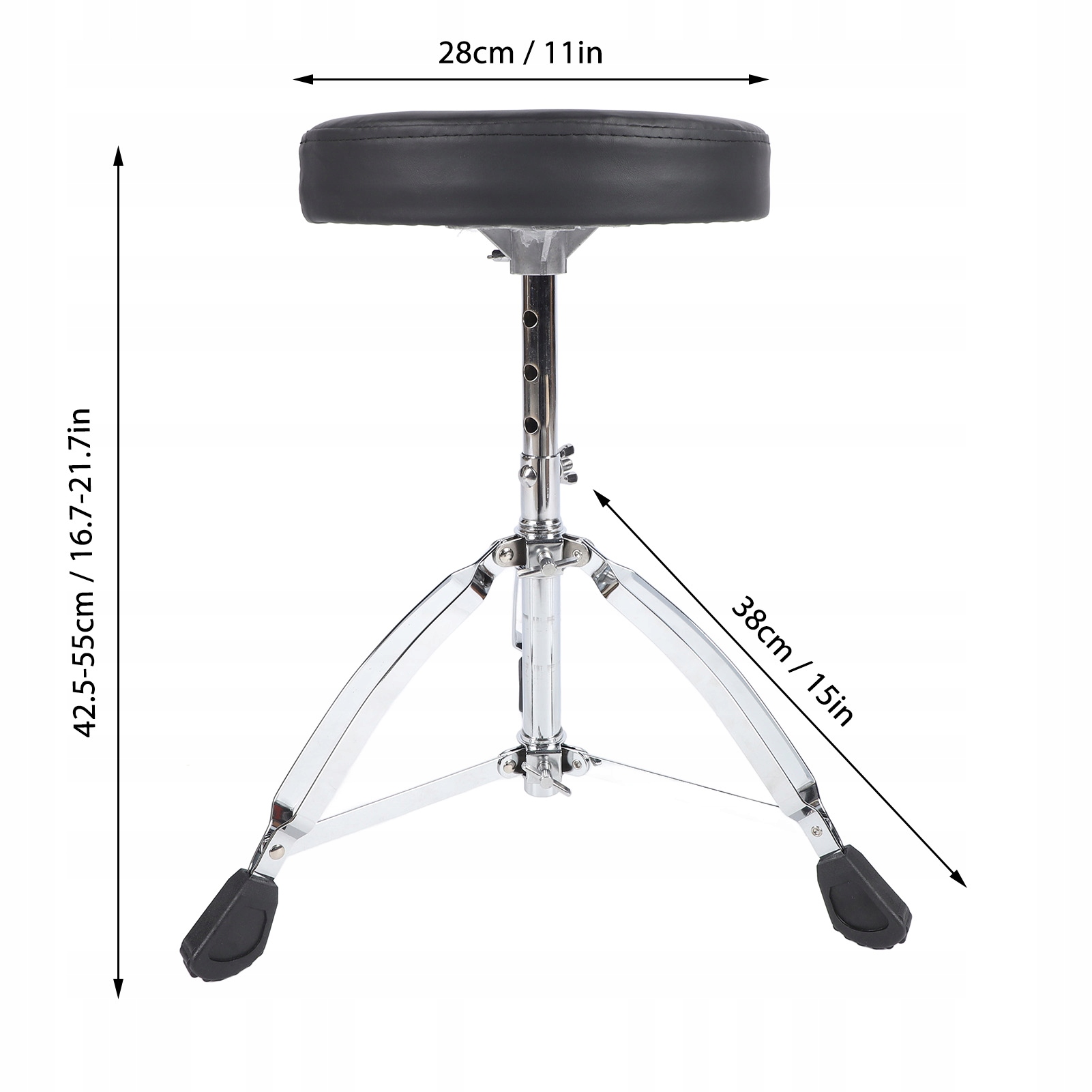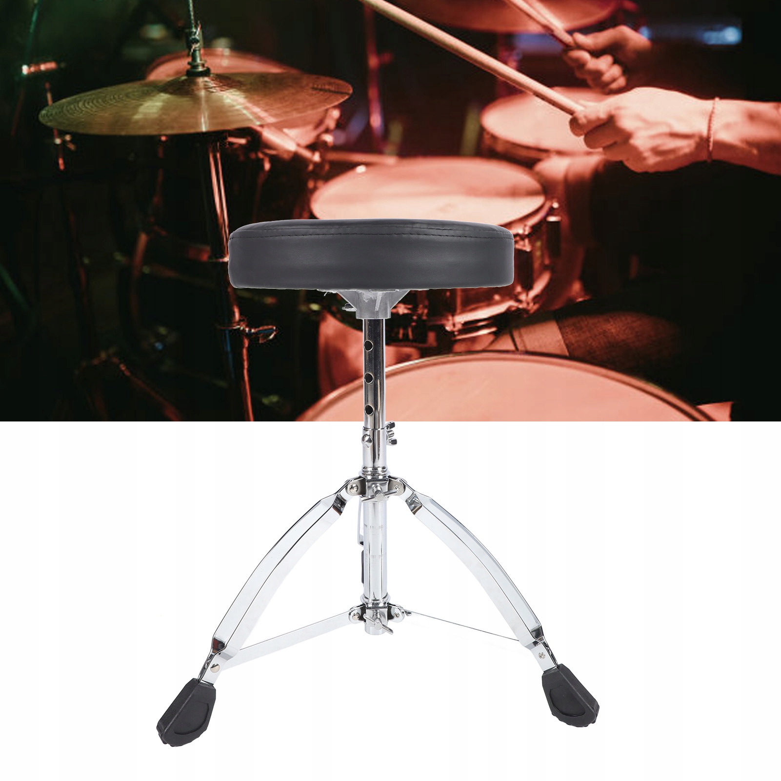 1. міцний матеріал: барабанний стілець виготовлений з алюмінієвого сплаву, з губкою високої щільності з глибиною 5 см, забезпечуючи хорошу стабільність та довговічність. 11 -дюймовий верх має трикутну форму, яка забезпечує зручне та безпечне сидіння.