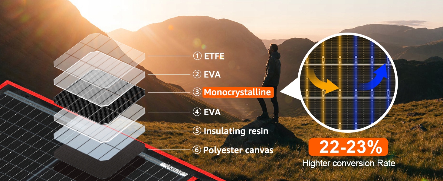 - 【НЕДОСТУПНІСТЬ ТА ВИСОКА ЕФЕКТИВНІСТЬ ПЕРЕТВОРЕННЯ】 - Завдяки високоефективним монокристалічним сонячним елементам ви отримаєте більшу енергоефективність. навіть якщо панель менша за традиційну модель. Збільшує вихідну потужність системи шляхом зменшення втрат на невідповідність.