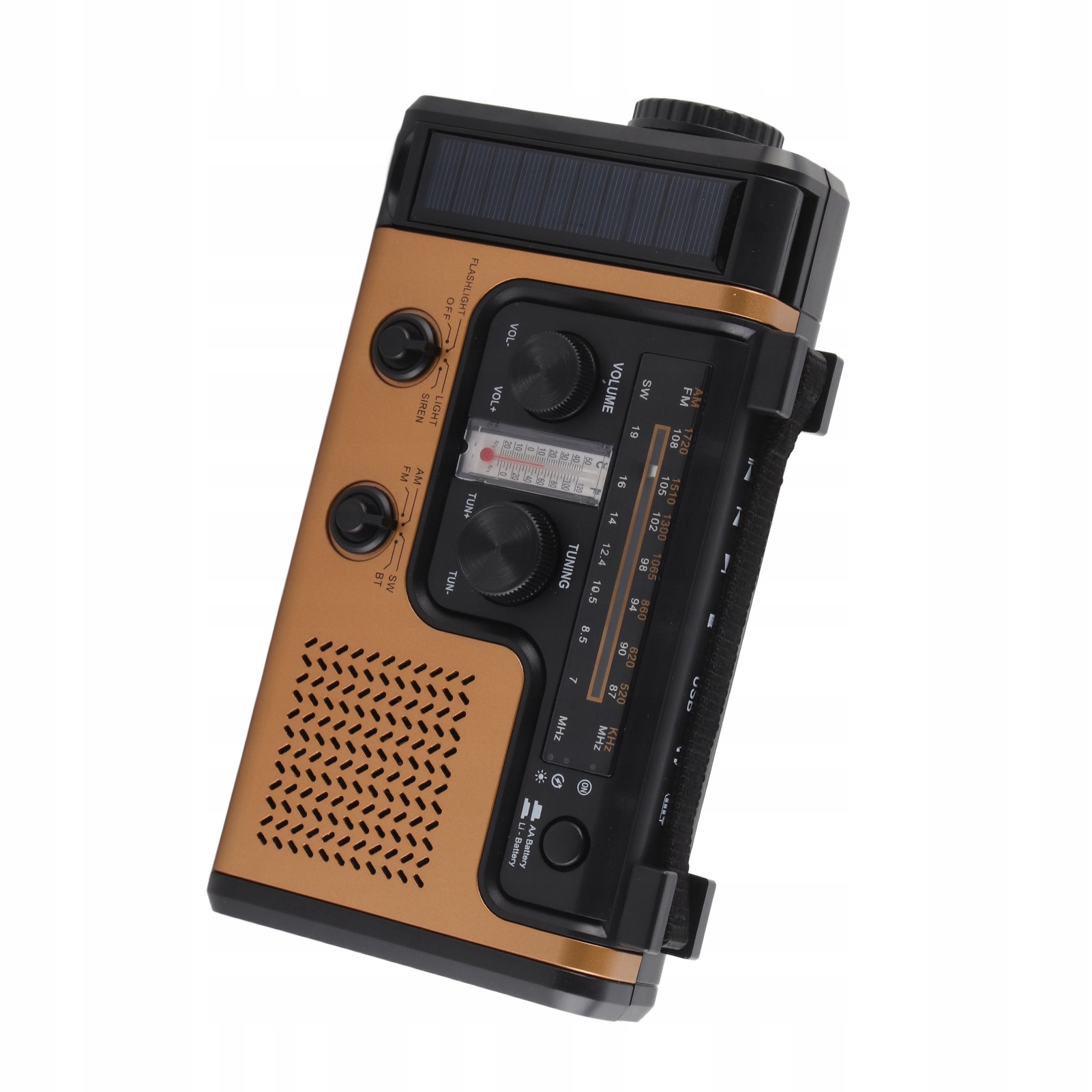 1. Багатодіапазонна та екстрена зарядка: AM FM SW радіо, вбудовані якісні динаміки, стабільний зв'язок. Коли ваш телефон розряджається, ви можете зарядити його через вихід 5 В постійного струму, щоб здійснювати екстрені виклики.
