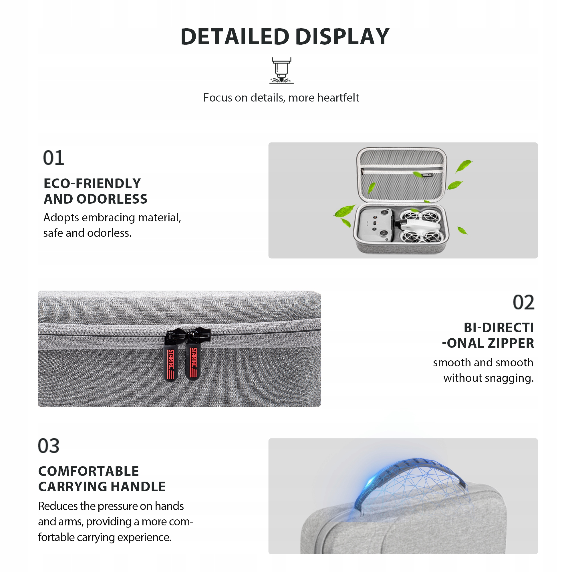 Зручний для подорожей: цей компактний футляр, створений для подорожей, невеликий і легкий, але в ньому можна зберігати аксесуари для дронів, призначені для використання на вулиці. Ви можете легко брати його в похід, кемпінг, зйомку на природі тощо.