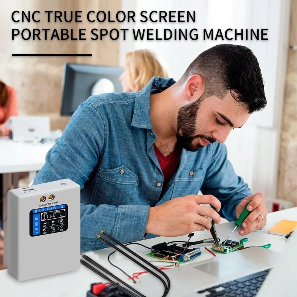 Видимого кольорового РК-екрана: Цей міні-точковий зварювальний апарат має 2-дюймовий кольоровий РК-дисплей, підтримує автоматичний робочий режим, з низькорівневим зарядним акумуляторним зарядком, моніторинг температури друкованої пластини в реальному часі та нагадування про високу температуру, налаштування меню звуку, обертання екрана, число зварювання, автоматичне вимикання та інші функції.