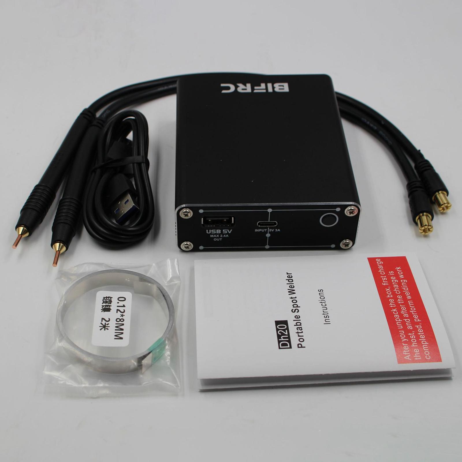 a: 1 Портативний шматок Основний блок зварювального точка + 2 Швидкий випуск паяльної ручки + 1 шматок C + 1 зарядний кабель 1 шматок нікельського листа (40 см/15,7 дюйма)