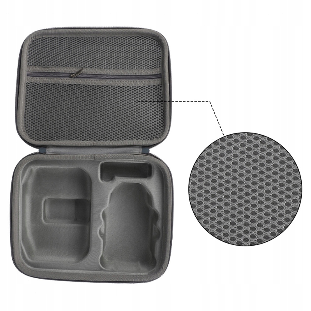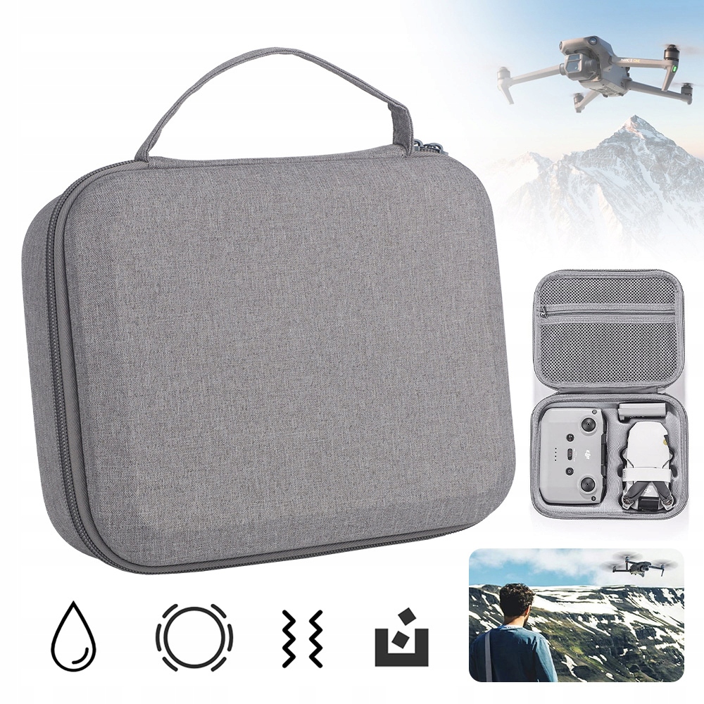 може вмістити безпілотник DJI Mavic Mini 2 (без необхідності зняття рами гвинта та гвинта), пульта дистанційного керування та запасних акумуляторів. Верхня сітка кишеня, кріплена блискавкою, може вмістити невеликі аксесуари, такі як: гвинт, кабель передачі даних, кришка камери, фільтр лінз, джойстик, США-B. Адаптер