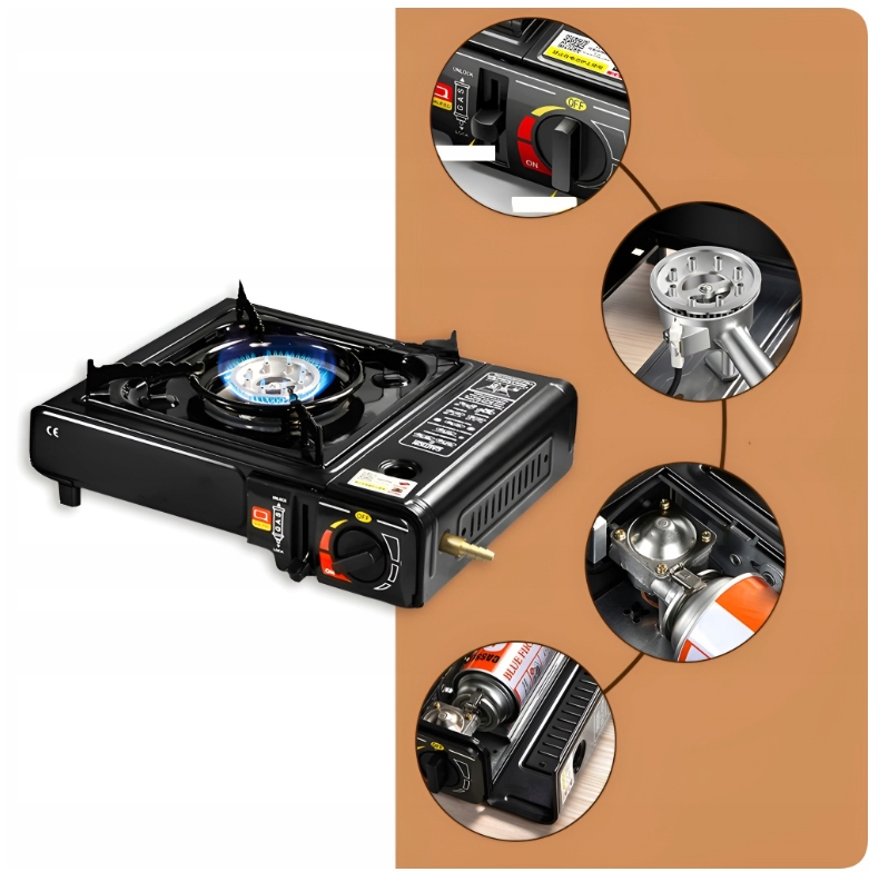 Портативна газова плита - надійне рішення для всіх, хто цінує комфорт, мобільність і можливість готувати гарячі страви в будь-яких умовах. Завдяки міцній конструкції, простоті використання та чотирьом газовим балончикам, які входять у комплект, ви отримуєте повний набір, готовий до використання відразу після розпакування. Це ідеальний вибір для кемпінгу, риболовлі, пікніків, кемпінгу чи походів.