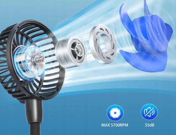 ✅ Найпотужніший двигун: завдяки використанню вдосконаленого безщіркового двигуна він не тільки зменшує тертя та шум, але й забезпечує більший вибух. Сила дме може досягти 4,9 м/с, що майже стільки ж, як і сила дме великого вентилятора. Сильний потік повітря забезпечить вам холод влітку.