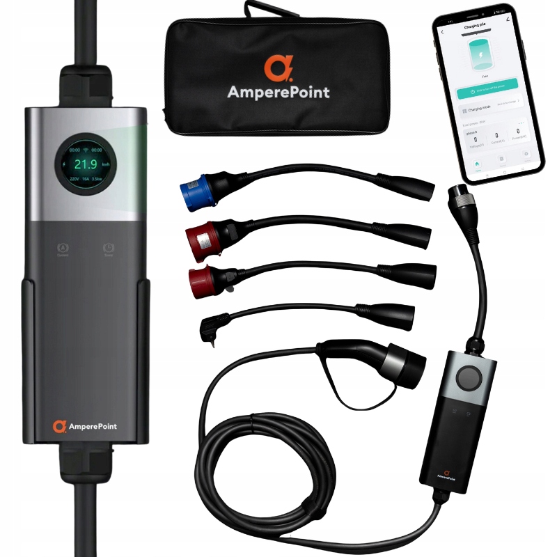 Амперна точка Q22 TYP2 22кВт АВТОМОБІЛЬНИЙ ЗАРЯДНИЙ ПРИСТРІЙ КОМПЛЕКТ АДАПТЕРІВ ЗАСТОСУВАННЯ