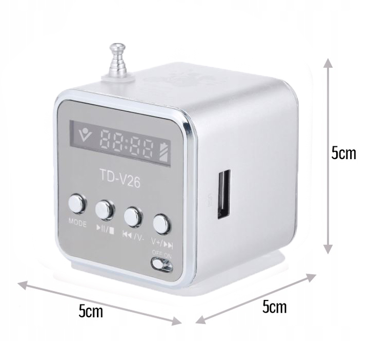 Міні-радіо замінює кілька пристроїв. Крім тюнера, пристрій оснащений MP3-плеєром, портами miniUSB і USB, а також слотом для карт microSD (TF). Він також має роз’єм для навушників і лінійний вихід 3,5 мм. Його можна використовувати як динамік для інших пристроїв, наприклад смартфона. Прилад виготовлений з алюмінію і має вбудований акумулятор. Оснащено цифрами з підсвічуванням і РК-екраном, на якому показано поточне джерело відтворення, час пісні, радіочастоту тощо.