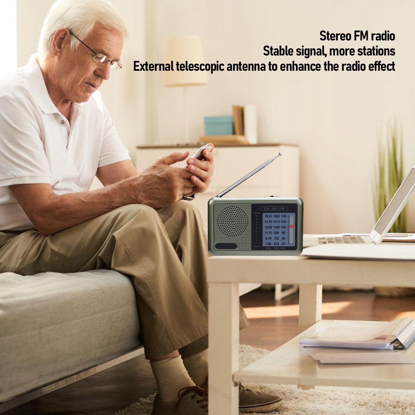 Функція: 1. Hifi Sound: Оснащений преміальним гостем, це портативне радіо FM SW надає звук Hifi, що дозволяє вам насолоджуватися чітким та чистим звуком, щоб отримати унікальну сухість.