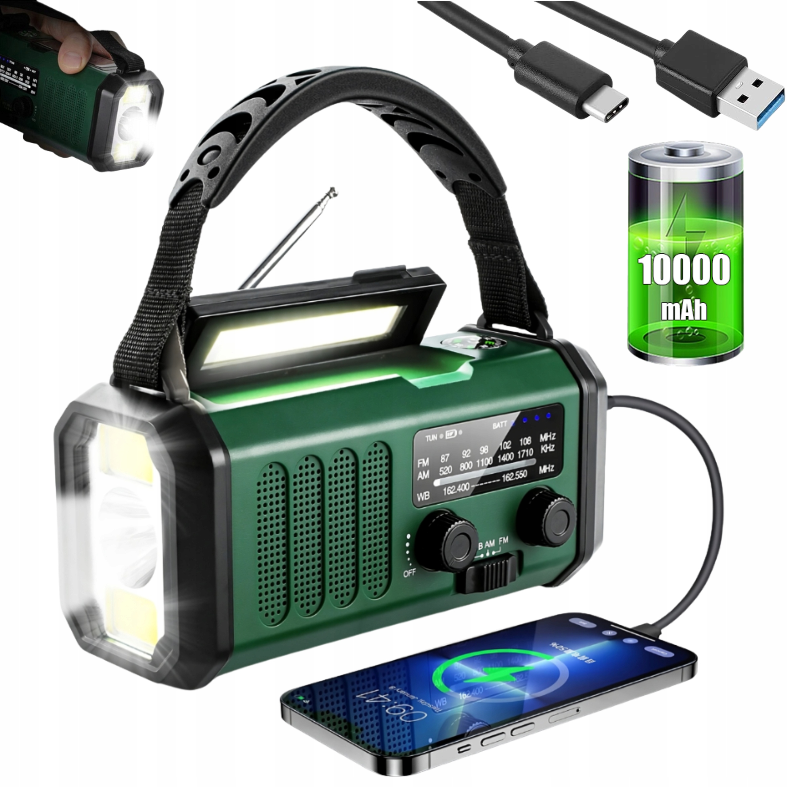 ПОРТАТИВНЕ БУДІВЕЛЬНЕ РАДІО 20000mAh З АВАРІЙНИМ ЖИВЛЕННЯМ, СОНЯЧНОЮ ПАНЕЛЛЮ, ПРОГНОЗОМ ПОГОДИ, КОМПАСОМ ТА ЛІХТАРИКОМ