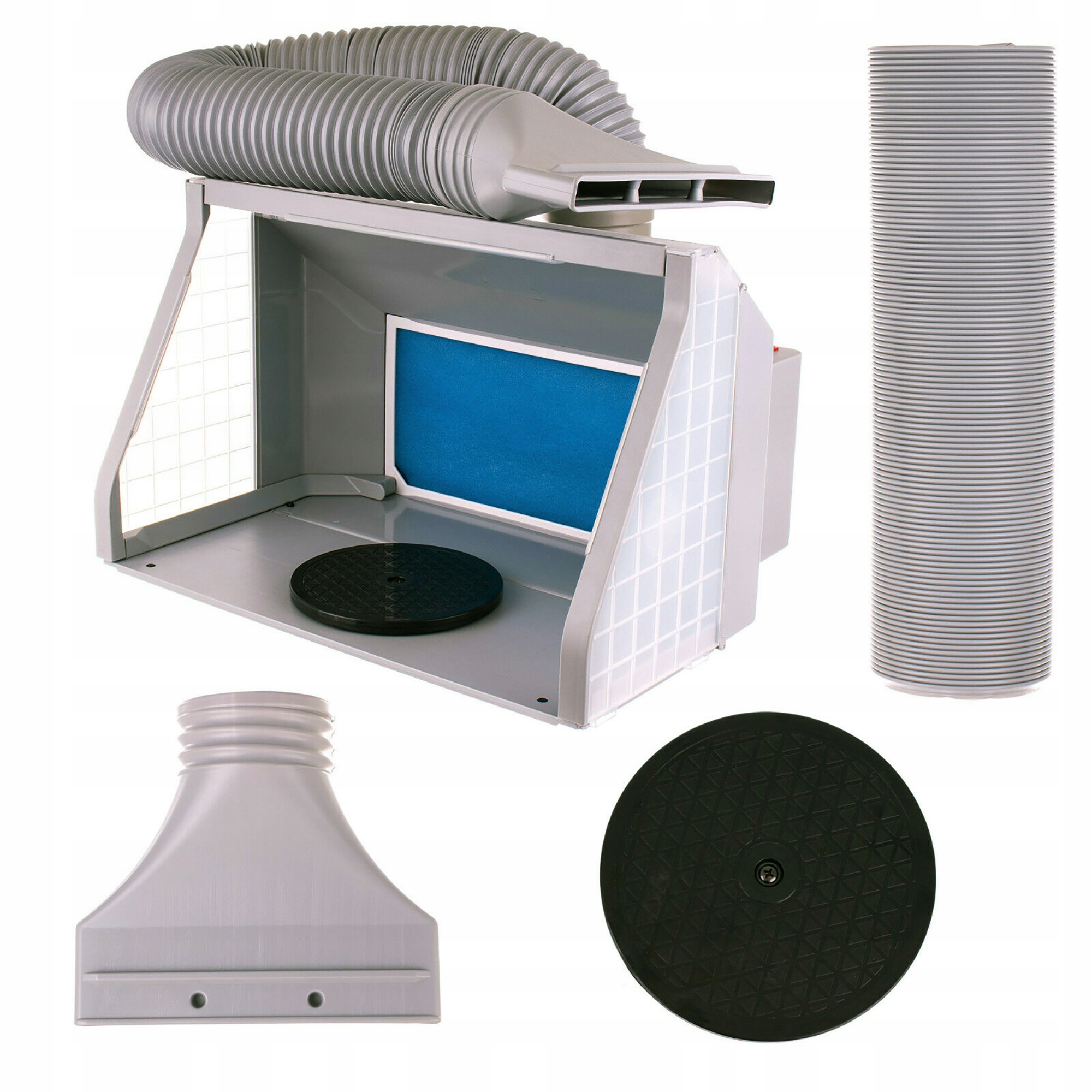 Камера для фарбування з трубою для відведення, обертовою платформою, вентилятором і освітленням. Професійно виготовлена фарбувальна камера, призначена для фарбування елементів міні-пістолетами або аерографами.