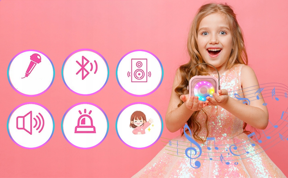 4 Час гри. додому або на подорожі. Це може не тільки співати з мікрофоном, але й може бути використаний як динамік для самостійної музики. Li> Ідеально підходить для днів народження, сімейних зустрічей, інших класних подій, подарунків для дівчат, дитячих іграшок.