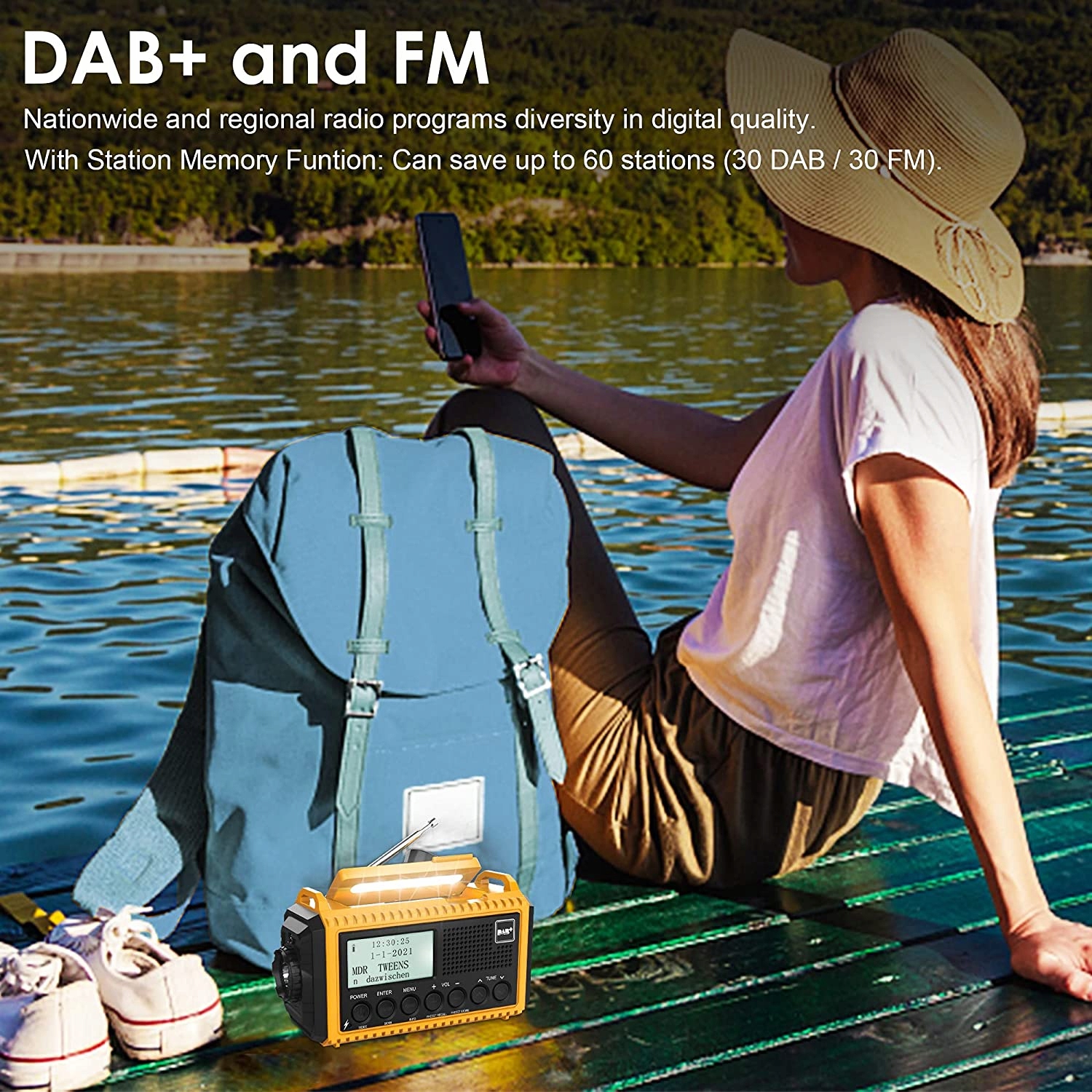 Це багатофункціональне цифрове радіо DAB/DAB+/FM, тому ви можете не лише слухати до ваших улюблених телепрограм, а також для зарядки телефону в екстреній ситуації, будильника, динамо-машини, лампи для читання та ліхтарика. Це радіо має ліхтарик дальнього та ближнього світла та 6 яскравих світлодіодних ламп для читання, щоб задовольнити різні потреби та захистити вас від темряви. У разі загрози сирена SOS може надіслати екстрене повідомлення.