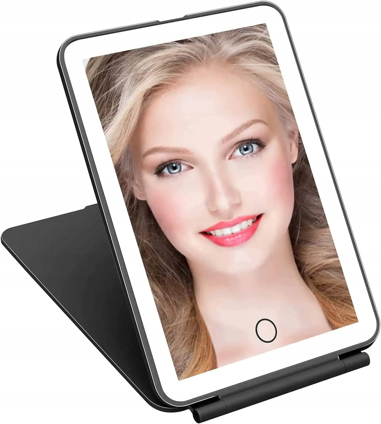 - Все косметичне дзеркало має розмір приблизно 15,4 х 13 см і складається до товщини 1,4 см. . Розміри дзеркальної поверхні 15,6 х 10,6 см. Його можна не тільки легко помістити в сумочку чи багаж, але й використовувати в літаку, на яхті, за робочим столом або в ліжку, щоб насолоджуватися вільним і насиченим життям.