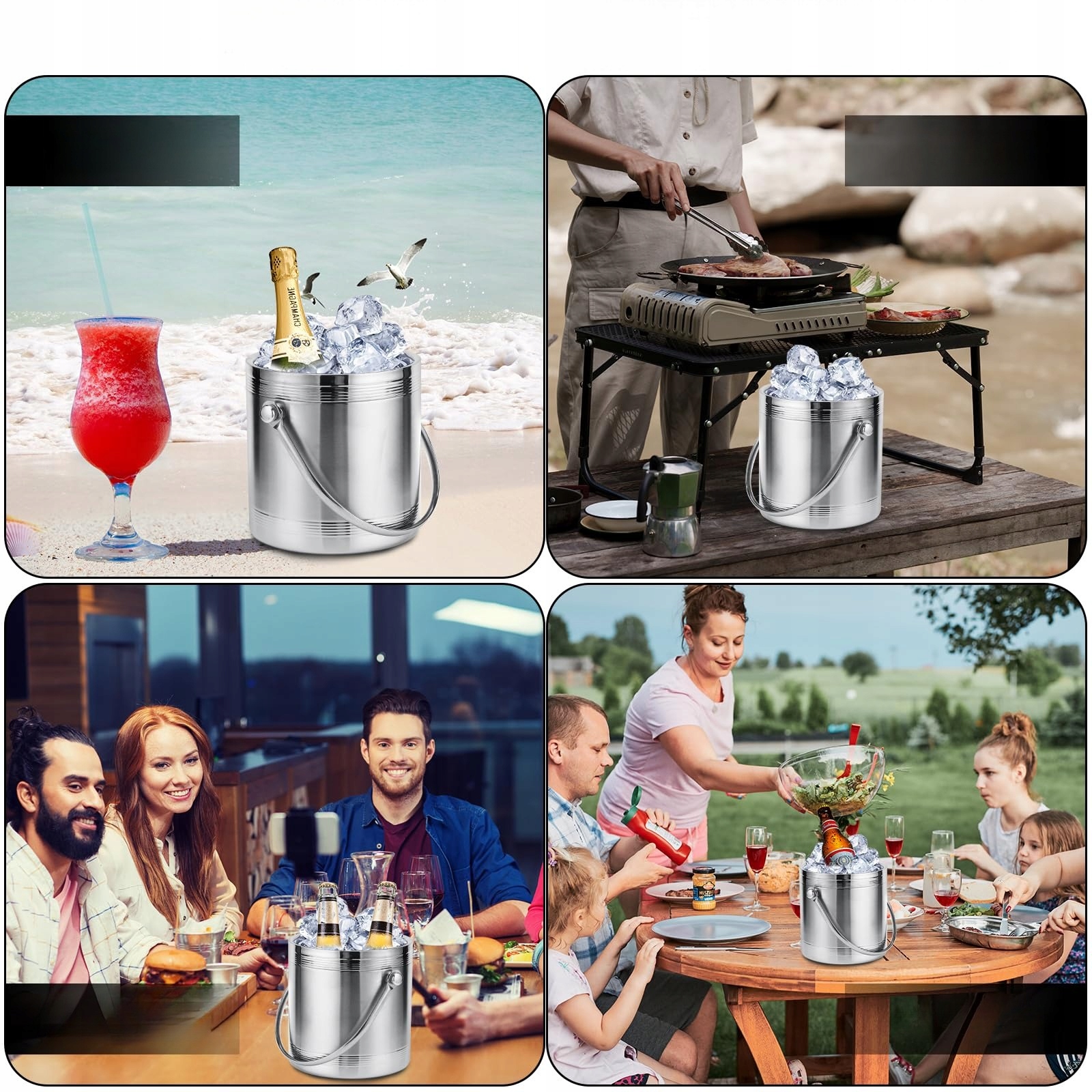 - Наше відро для льоду має подвійні стіни та кришку з нержавіючої сталі, завдяки якій воно може тривати холодно. Вино залишатиметься ідеально охолодженим навіть під час тривалого та розслаблюючого літнього полудня
