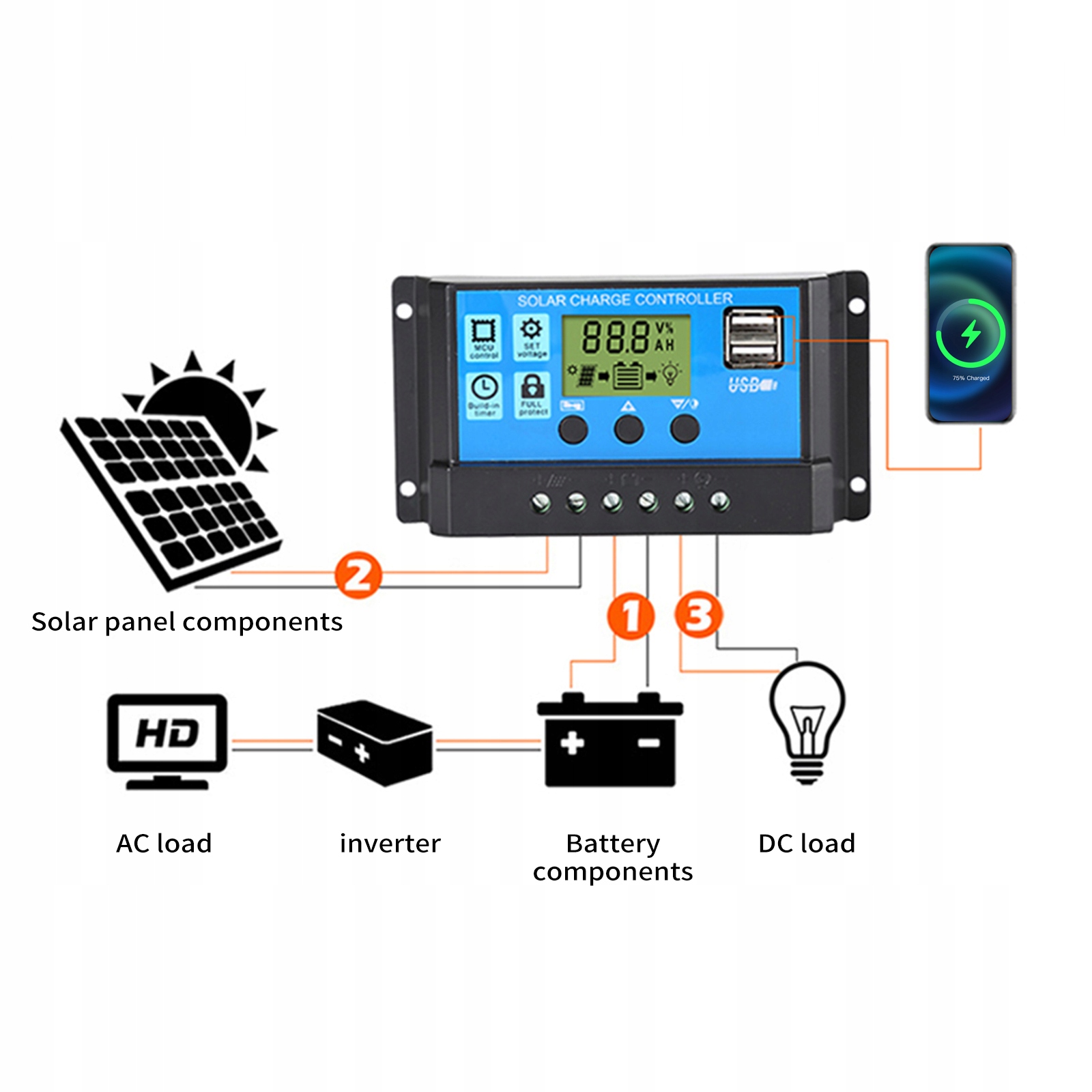 - Багатофункціональний дизайн: оснащено двома портами USB для заряджання та DC5521 акумулятор жіночий інтерфейс, може одночасно заряджати пристрої на 5 В, такі як мобільні телефони та спортивні камери, а також батареї на 12 В для автомобілів, кораблів тощо, що задовольняє потреби зарядки різних пристроїв.