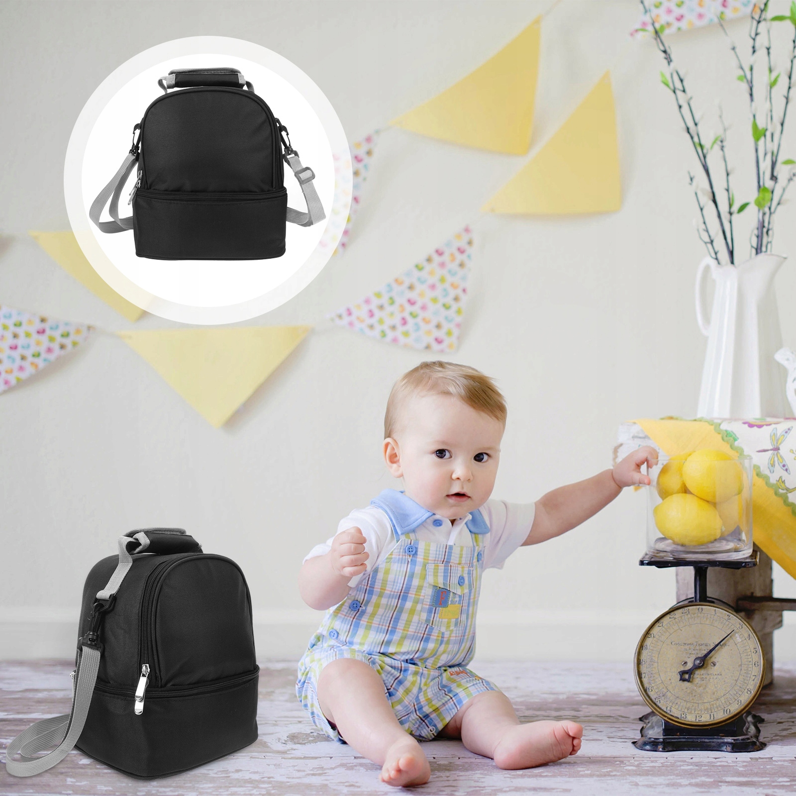 ✅ в повній ізольованій і щільній, з легкою підкладкою. Побудована суцільною ручкою кожного мішка, що дає можливість прикріпити його до ручки візки як щоденний пакет обіду.