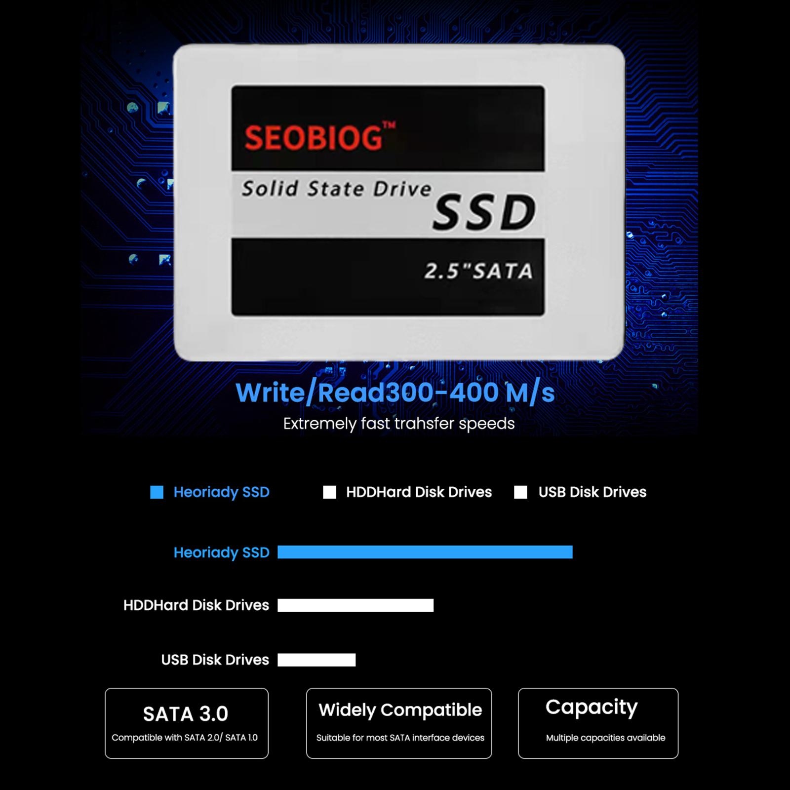 SATA3.0 Інтерфейс: стійкий до удару, стійкий металевий корпус. Завдяки інтерфейсу SATA3.0 він може бути адаптований до більшості комп'ютерів, доступних на ринку, з'єднуючи та граючи, не маючи цього. Дані.