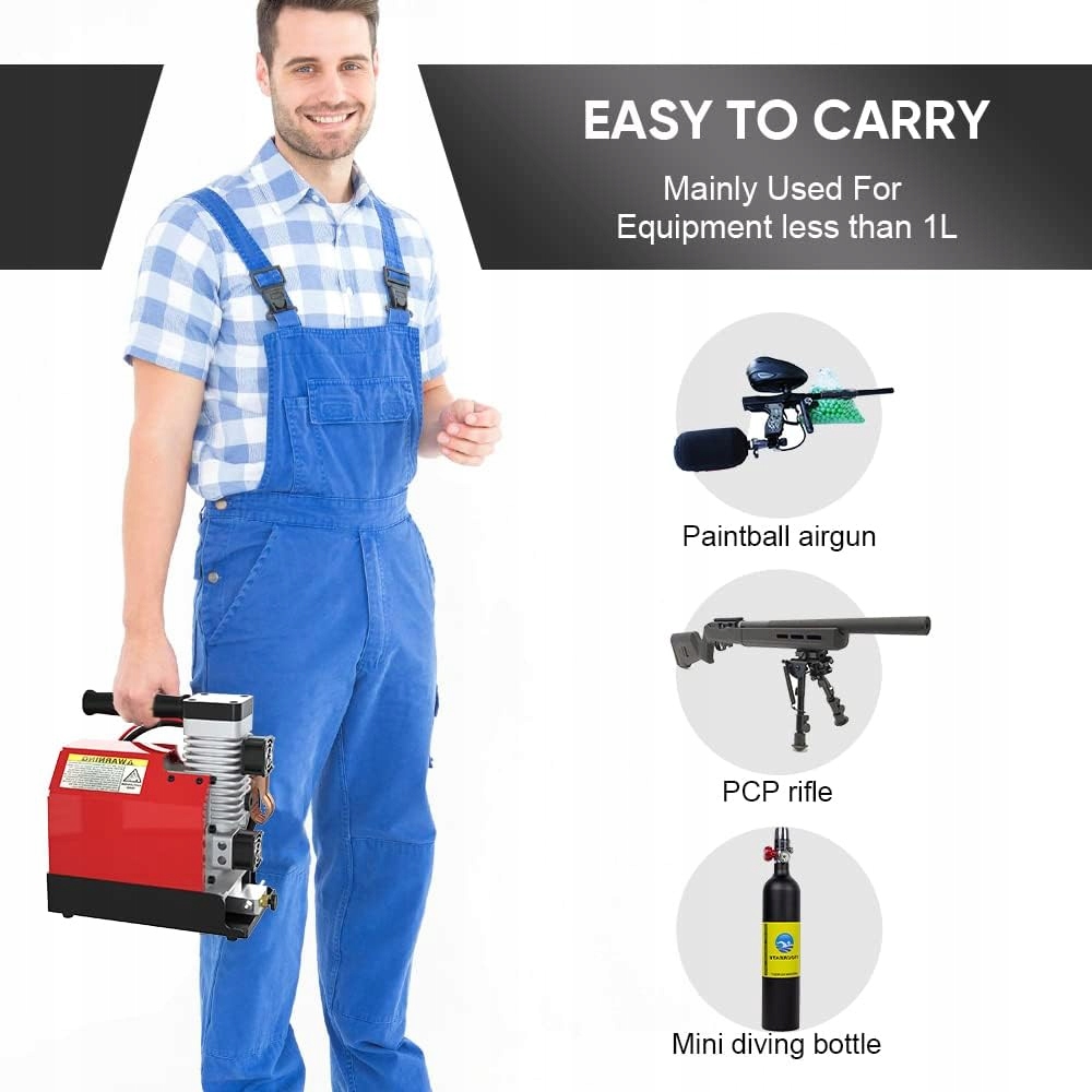 - Freefree, безводне та побудоване охолодження вентилятора забезпечує тривалий термін експлуатації: на відміну від інших електричних насосів з високим тиском, для яких потрібна стандартна масляна та охолоджуюча вода, продукт також не потребує нафти, є чистим та гігієнічним, він не потребує зовнішнього водного насоса для охолодження, його легко вживати. Це економить багато енергії під час використання. Порада: нова версія більше не містить жиру. Посібник користувача призначений для старої версії. Результат випробувань на дме: 0,5 л танк, від 200 бар до 300 бар займає близько 10 хвилин; Забезпечення тесту для занурення: контейнер 0,5 л, від 0 бар до 300 барів займає 22 - 26 хвилин. Вогонь, пошук витоків, контроль за напругою, автомобілі тощо