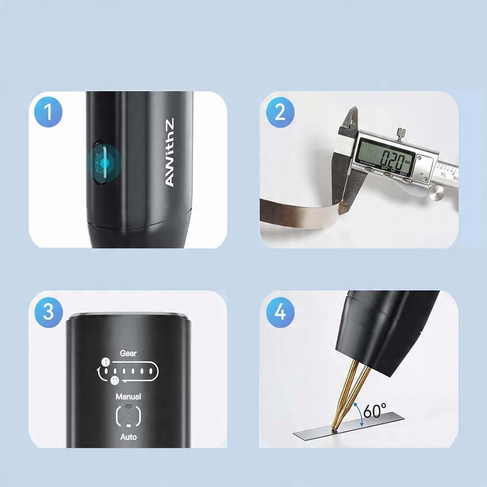 Наші точки зварювальні пальники мають лише дві кнопки, кожен з них був належним чином позначений, що сприяє роботі. Завдяки цим бездротовим зварювальним пальникам, вам не потрібно відбирати руки від робочого місця. Щоб увімкнути ліхтарик, утримуйте бічну кнопку увімкнення/вимкнення середнім пальцем протягом 2 секунд. Щоб відрегулювати рівень живлення, натисніть і утримуйте верхню кнопку управління живленням вказівним пальцем протягом 2 секунд. Це дозволить встановити ліхтарик в автоматичному або ручному режимі. Ергономічна конструкція кнопок та бездротової роботи дозволяють звести рідину та неприємності.